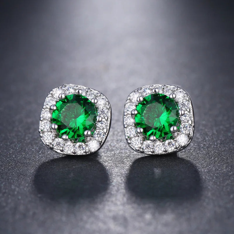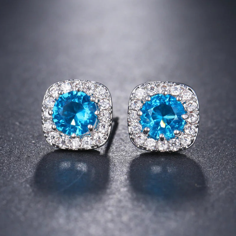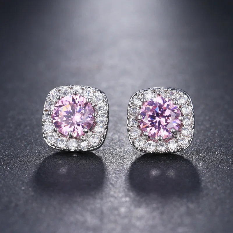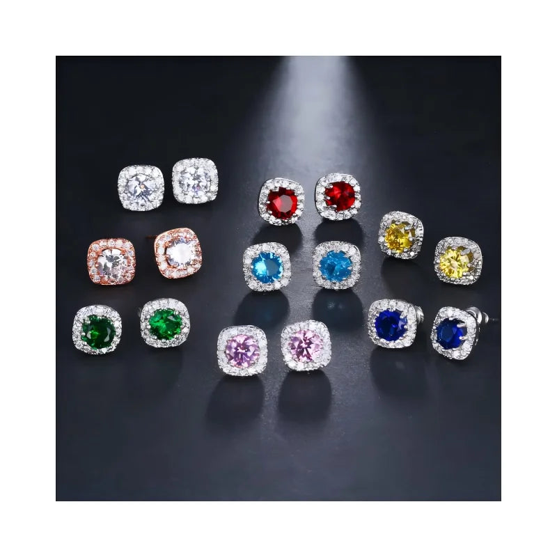 Copper Alloy Square Stud Earrings with Multicolor CZ Stones Sparkling Party/Daily Jewelry Gift for Women