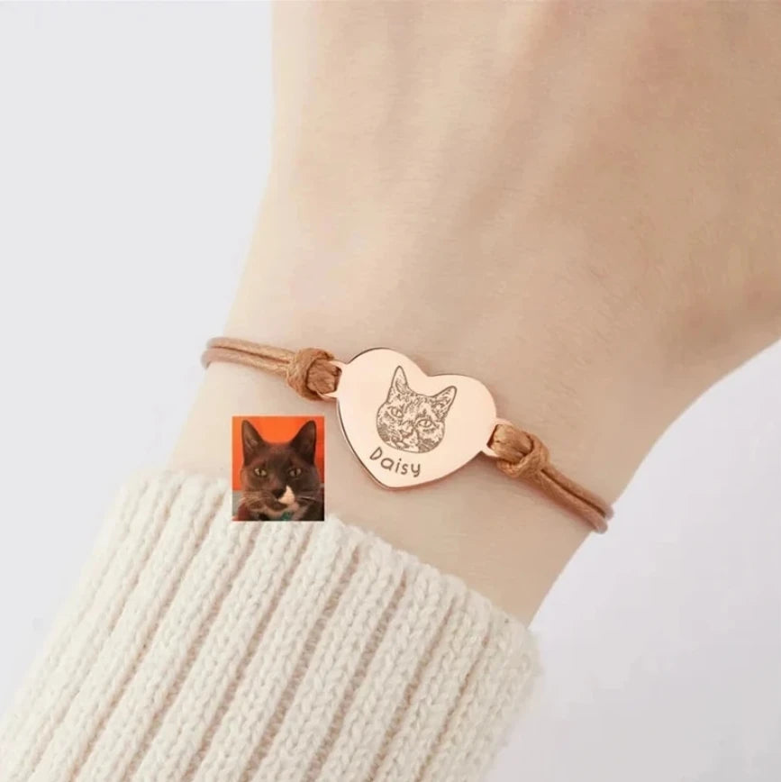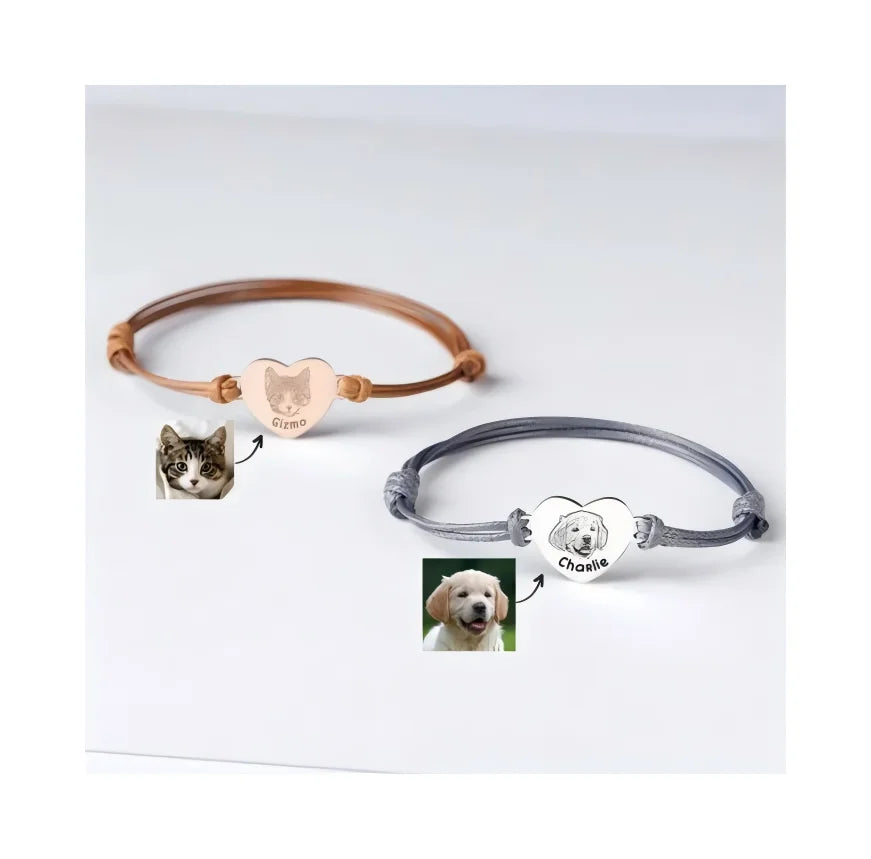 Customized Unique Pet Portrait Name Heart Bracelet Handmade Wax Rope Braided Adjustable Bracelet Pet Memorials Jewelry Gift