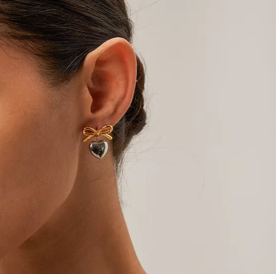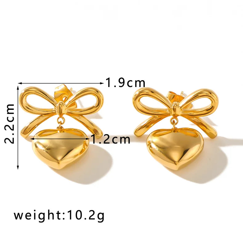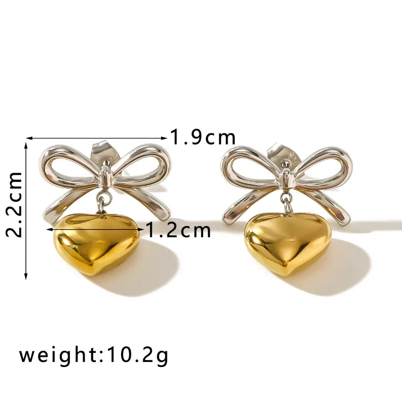 Dainty Gold Plated Heart Dangle Earrings Gifts for Valentines Day Stainless Steel Bowknot Drop Earrings Fashion Jewelry