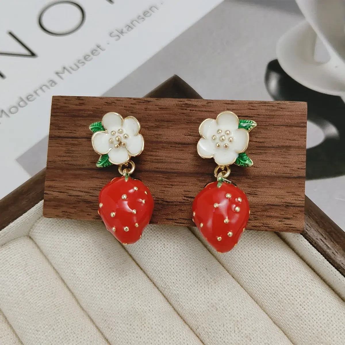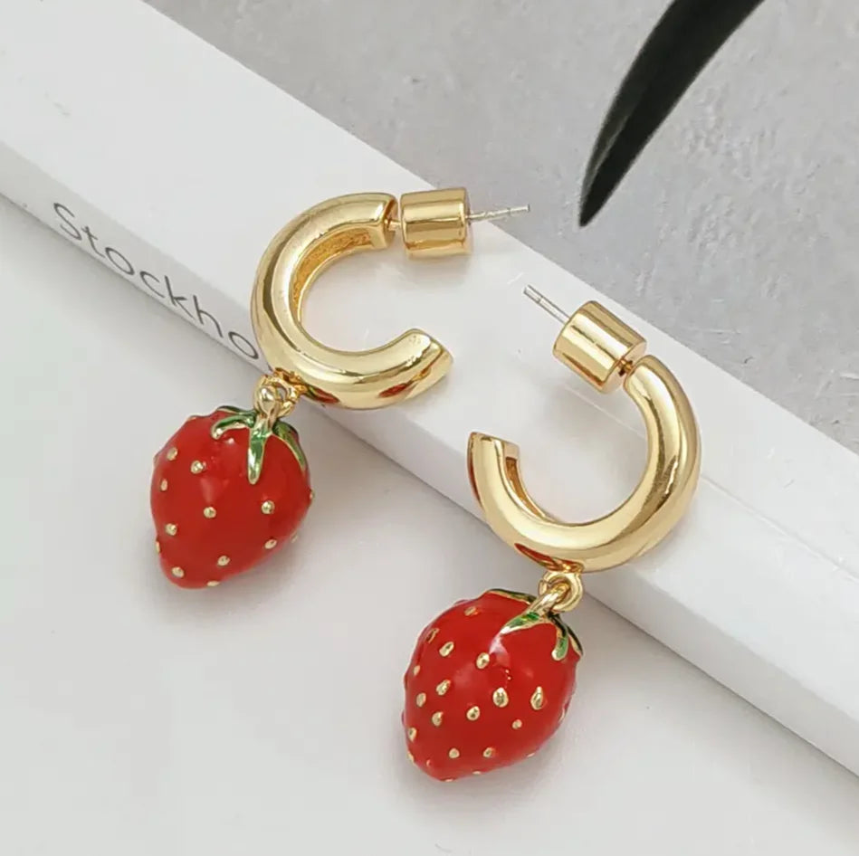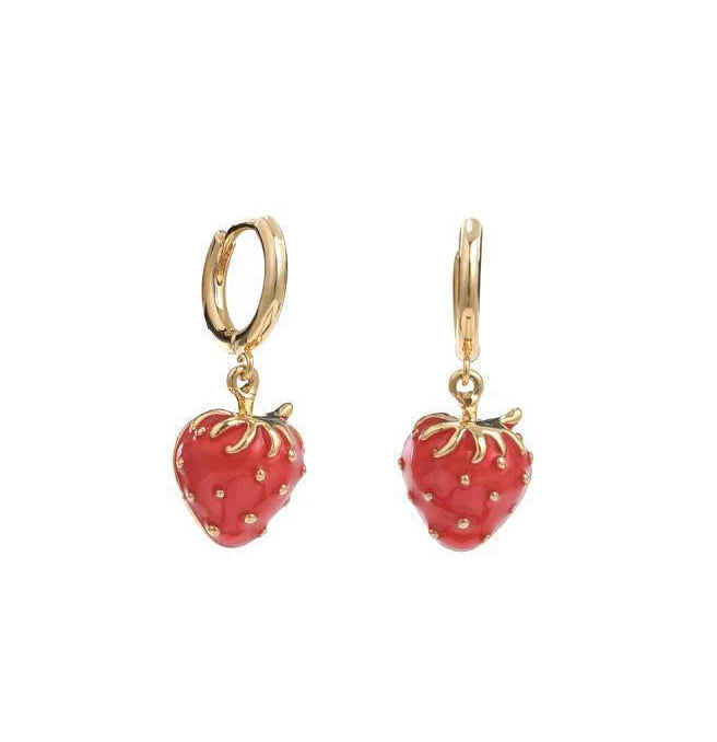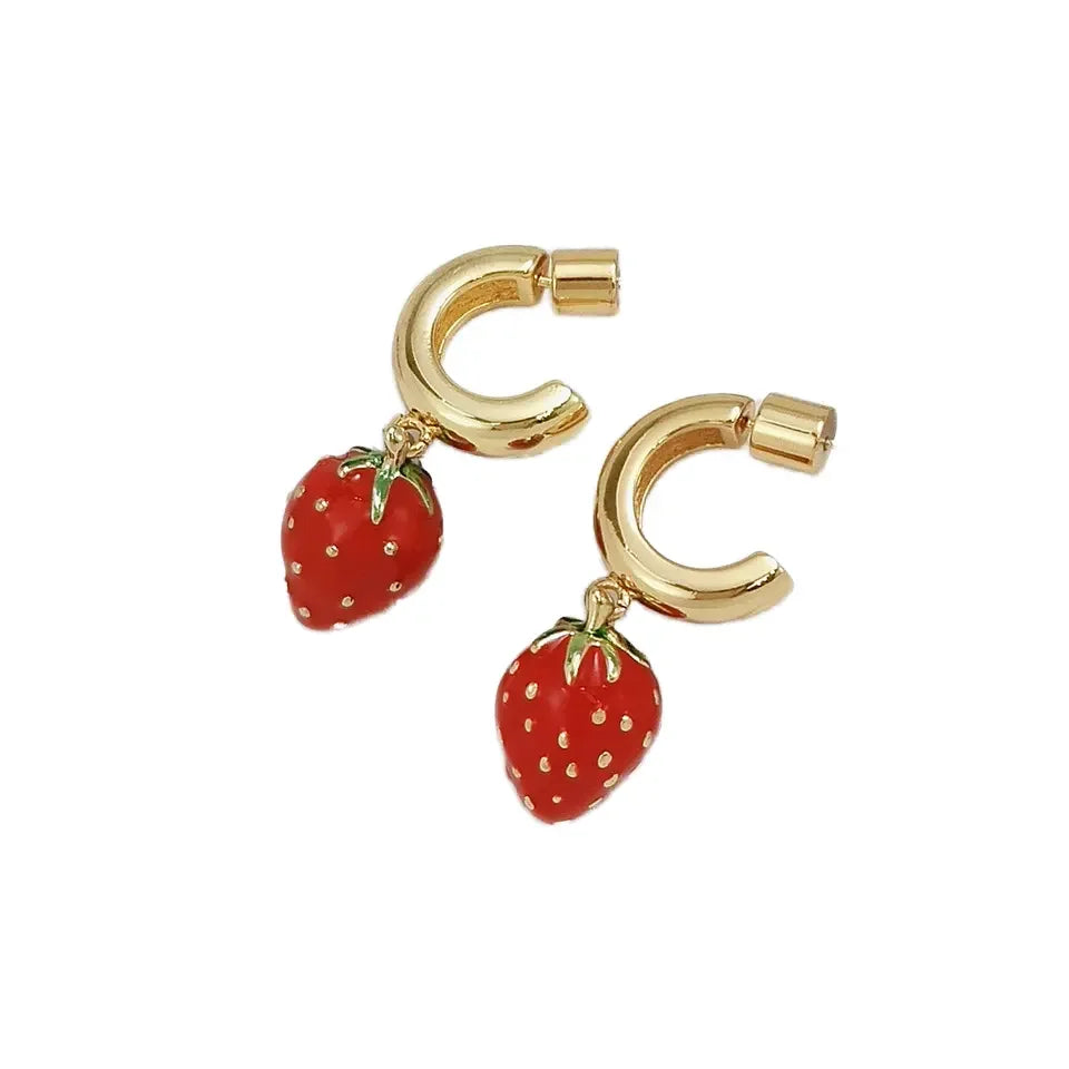 Exquisite Stainless Steel Strawberry Earrings Valentine Gift Set Cute Red Mini Strawberry Huggie Earrings for Women