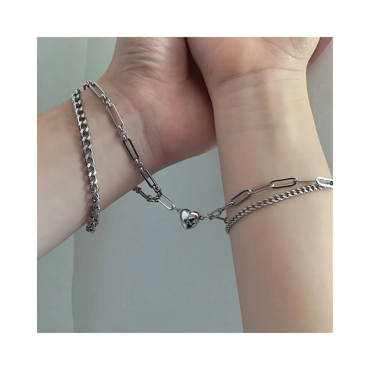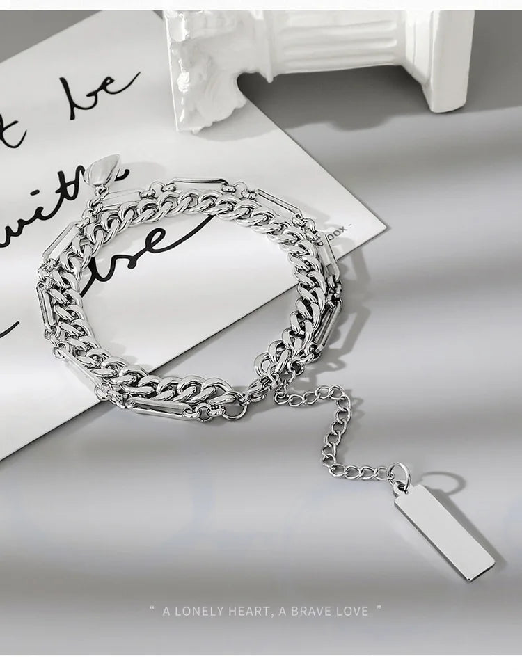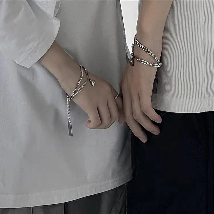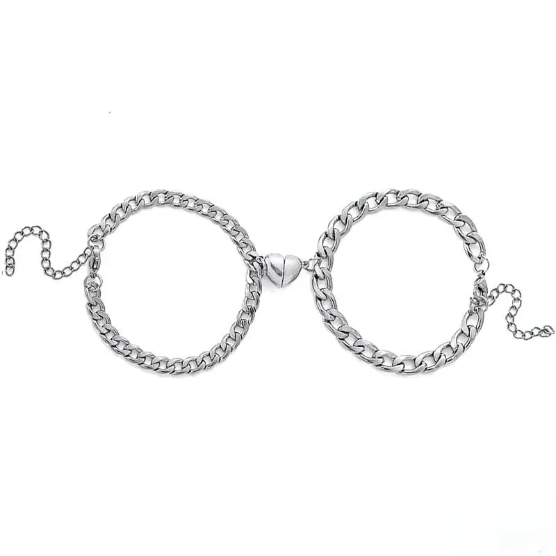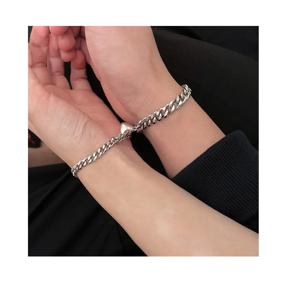 Fashion Adjustable Half Heart Magnetic Bracelets Silver Love Couple Bracelet Set Matching Cuban Link Bracelets for Couples