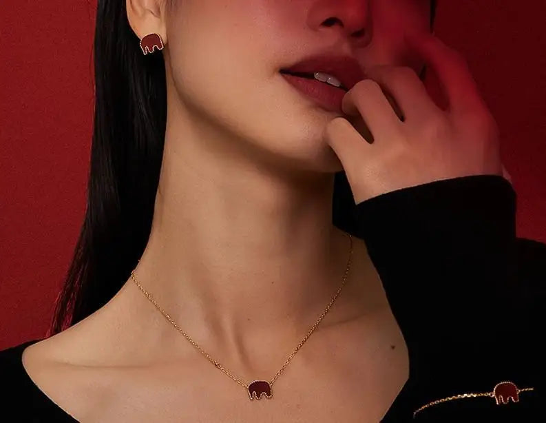 Fashion 14K Gold Plated Elephant Earrings Minimalist Stainless Steel Red Elephant Necklace Elephant Jewelry Sets