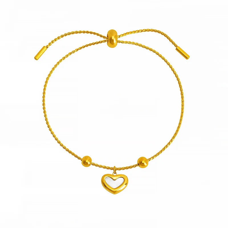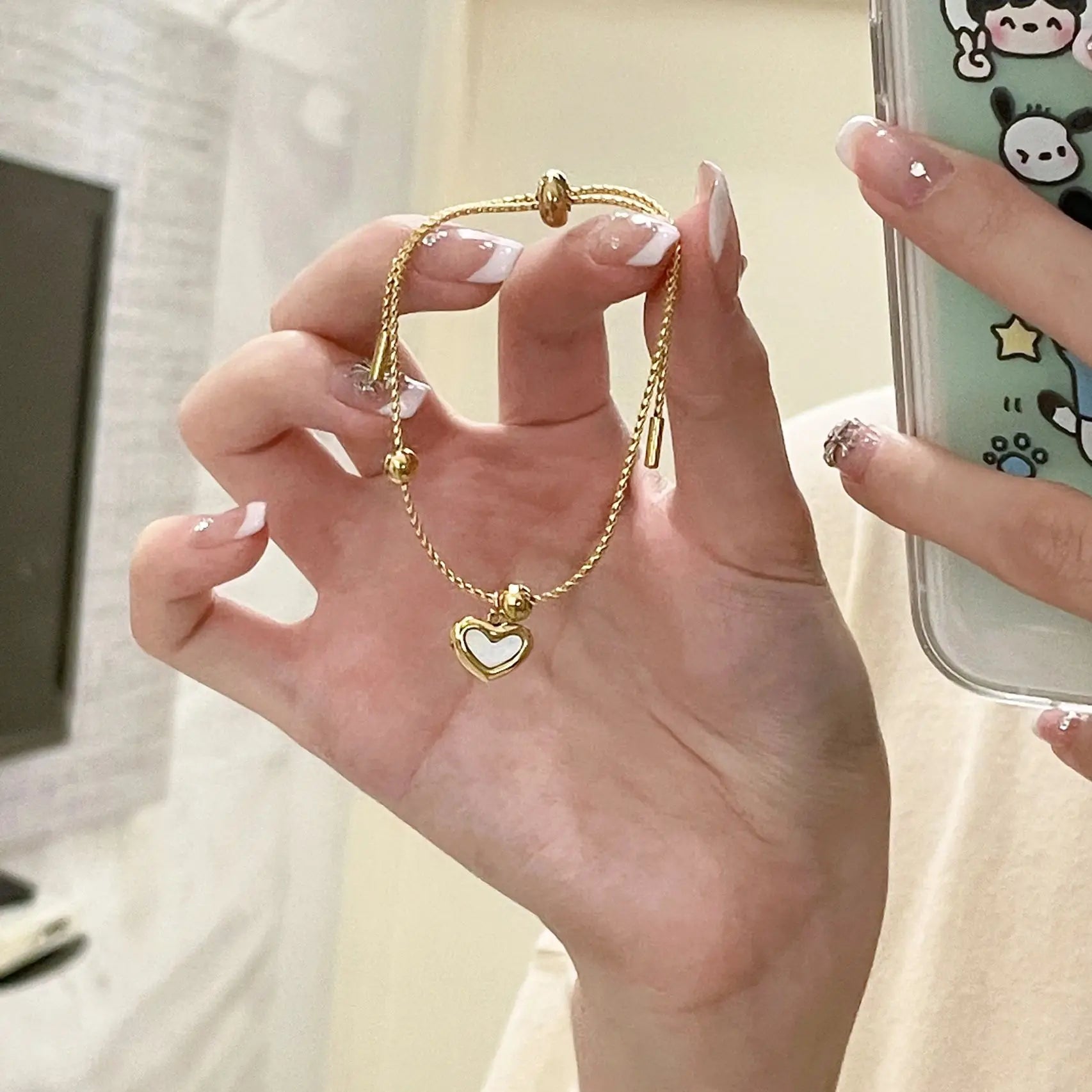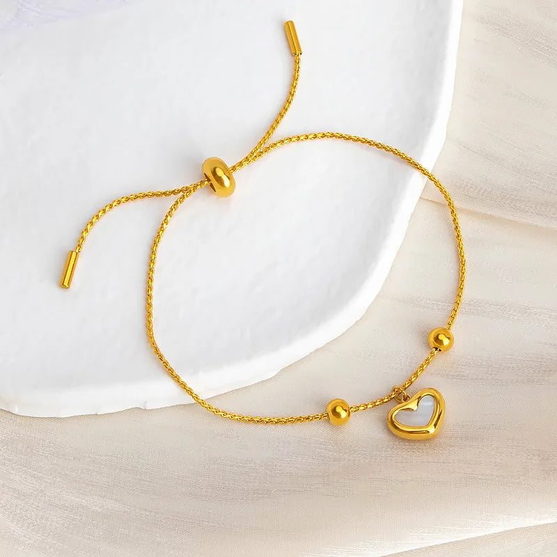 Fashion White Mother of Pearl Bracelet Adjustable Stainless Steel Gold Beads Heart Bracelet for Women