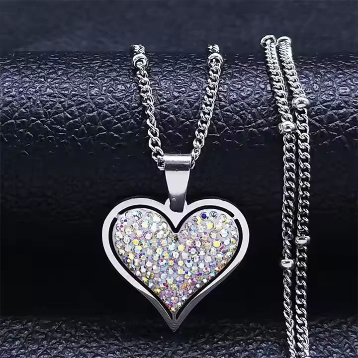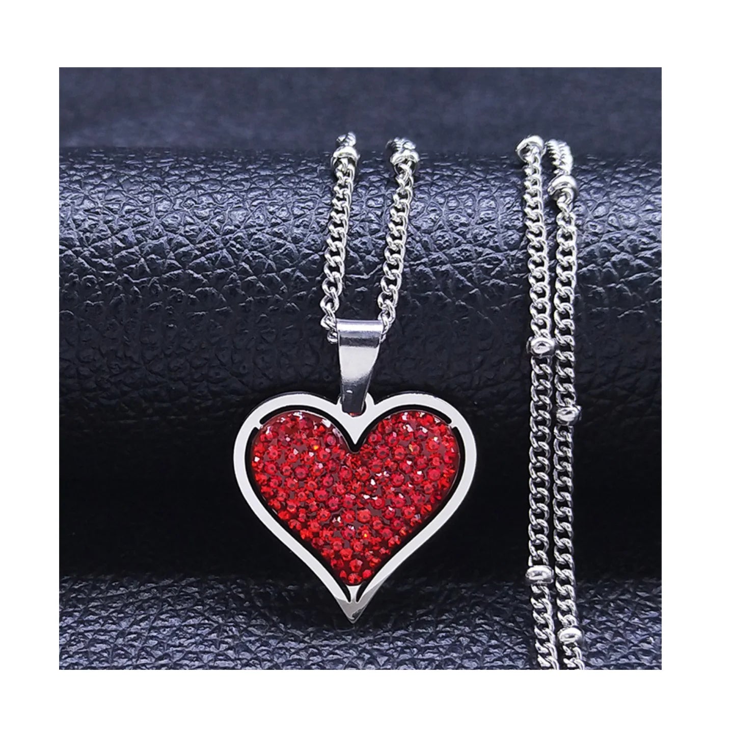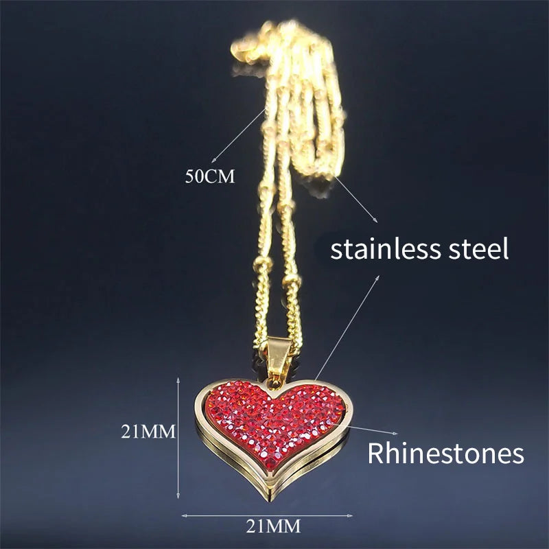 Fashion Stainless Steel Red Love Heart Pendant Necklace Elegant Iced Out Diamonds Hear Necklaces for Women