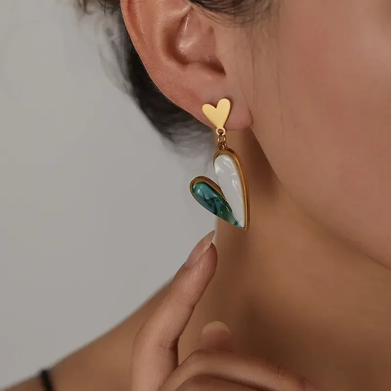 Fashion Stainless Steel 316l Jewelry Heart Shape Tear Drop Natural Gemstone Earrings for Women Gifts Valentines Day