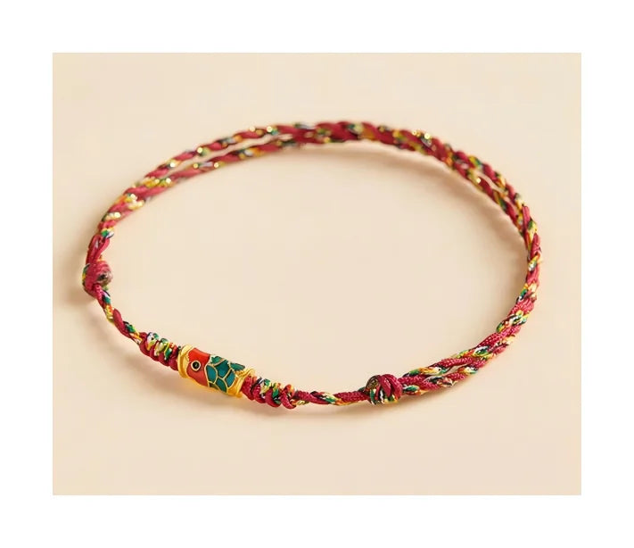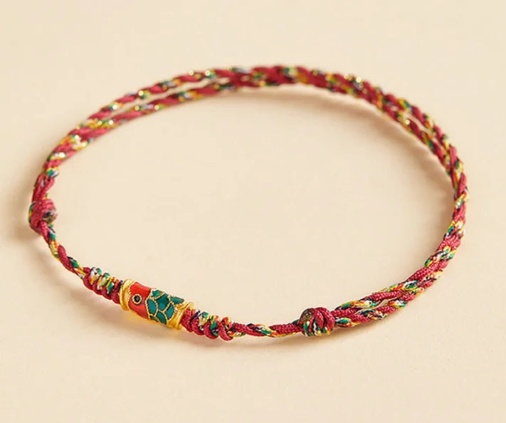 Handmade Braided Red Rope Bracelets Chinese Good Luck Bracelets Koi Fish Charm Bracelet for Women