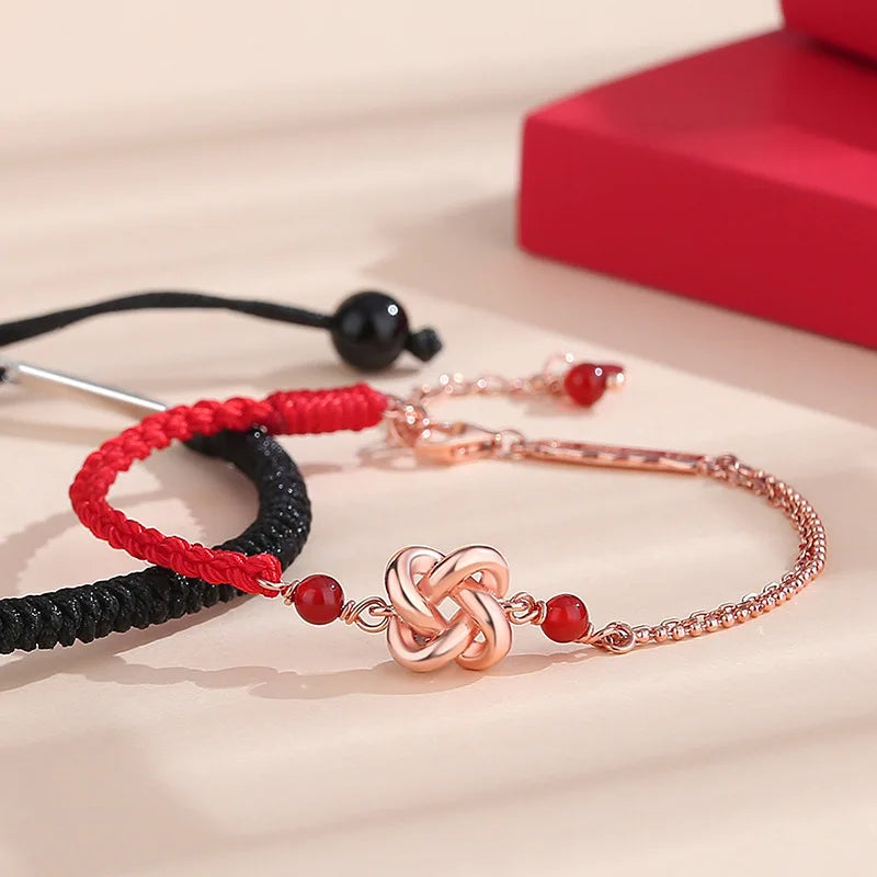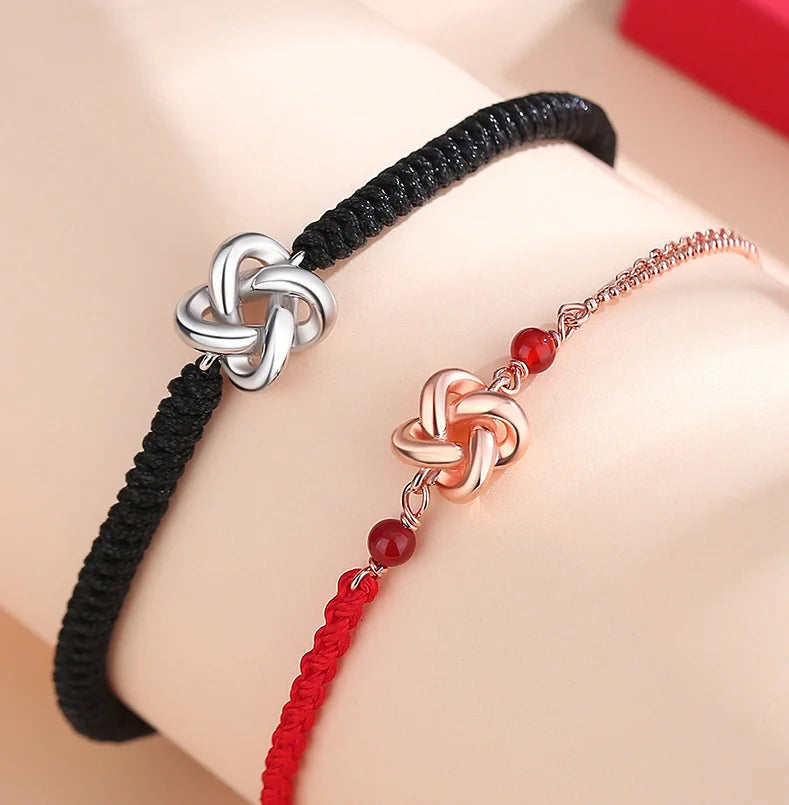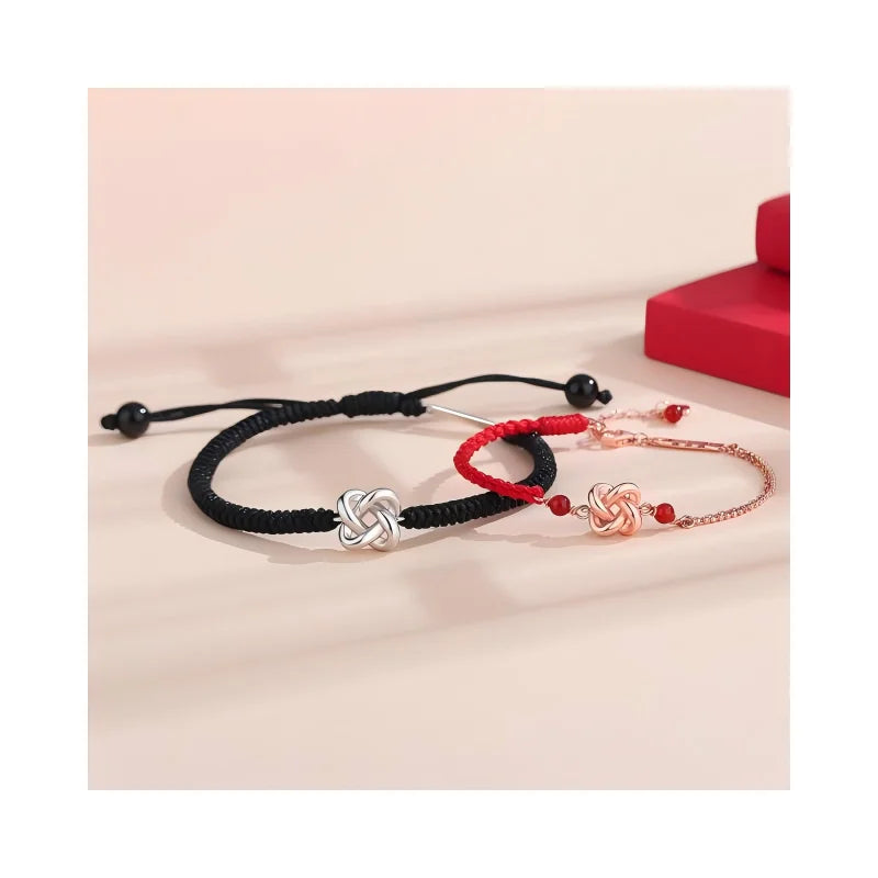 High Quality S925 Sterling Silver Rose Gold Infinite Bracelet Handmade Braided Red Black Rope Couple Bracelets for Lovers