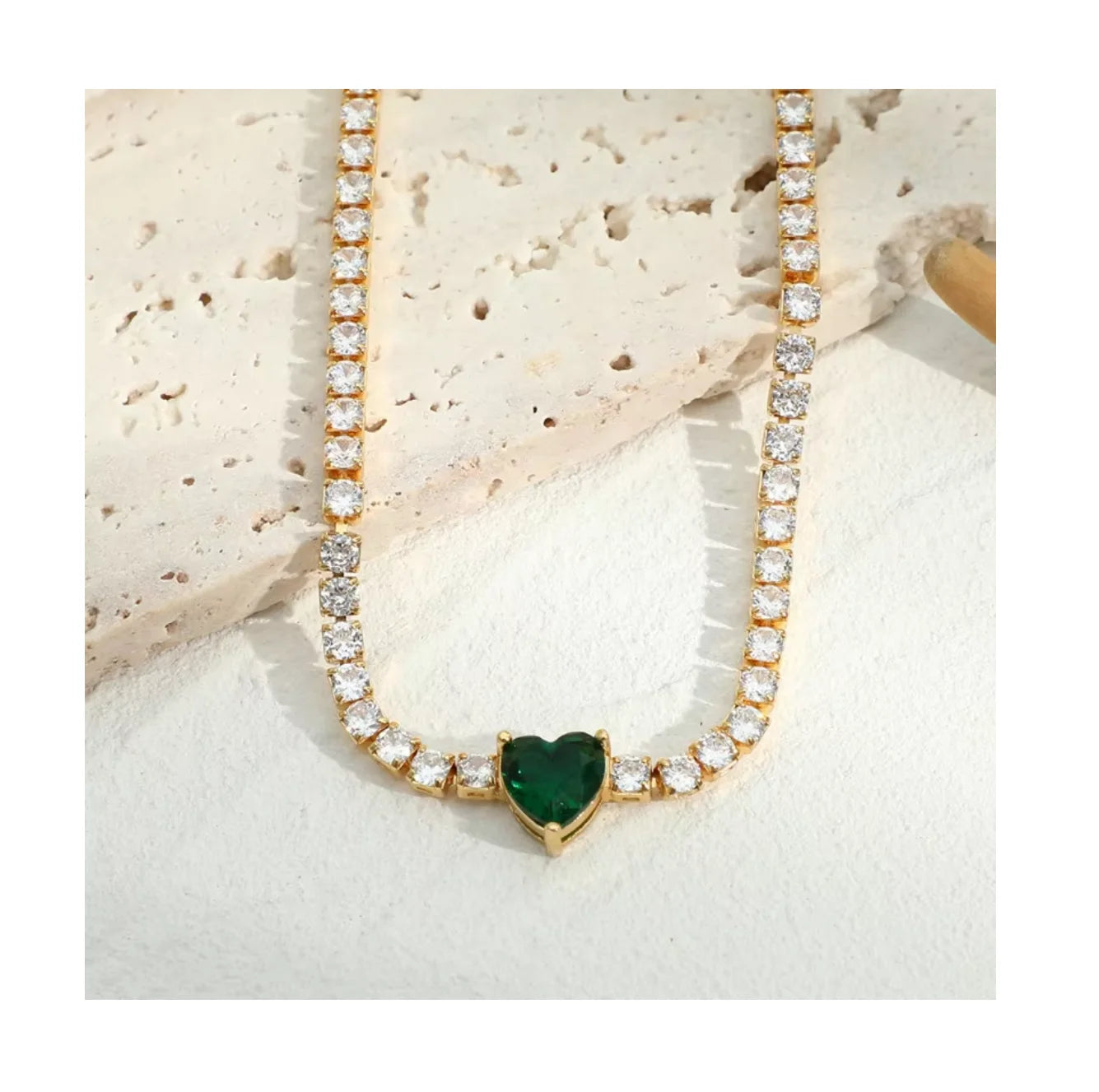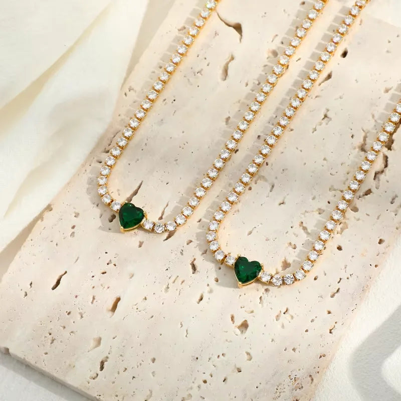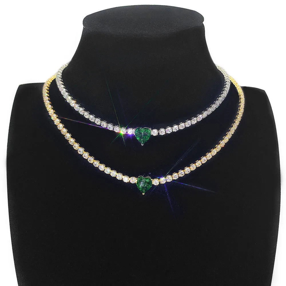 High Quality White Zircon Tennis Heart Chain Necklace for Woman Retro Diamond Love Heart Choker Necklaces Jewelry