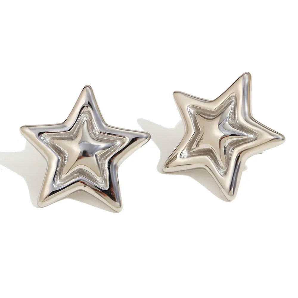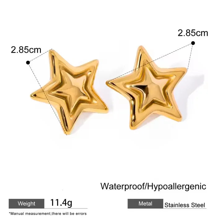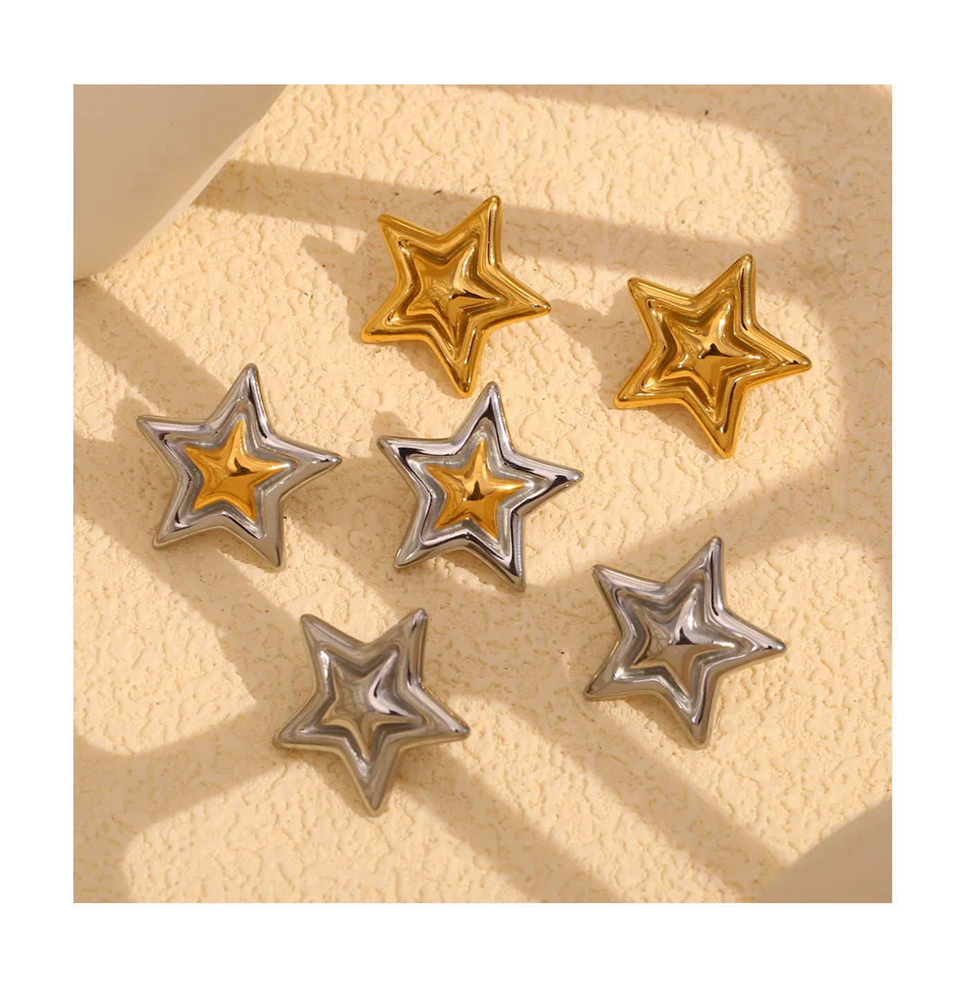 Huggie Jewelry Stainless Steel Big Star Stud Earrings for Woman Three-dimensional Five-pointed Star Earrings Valentine's Gift