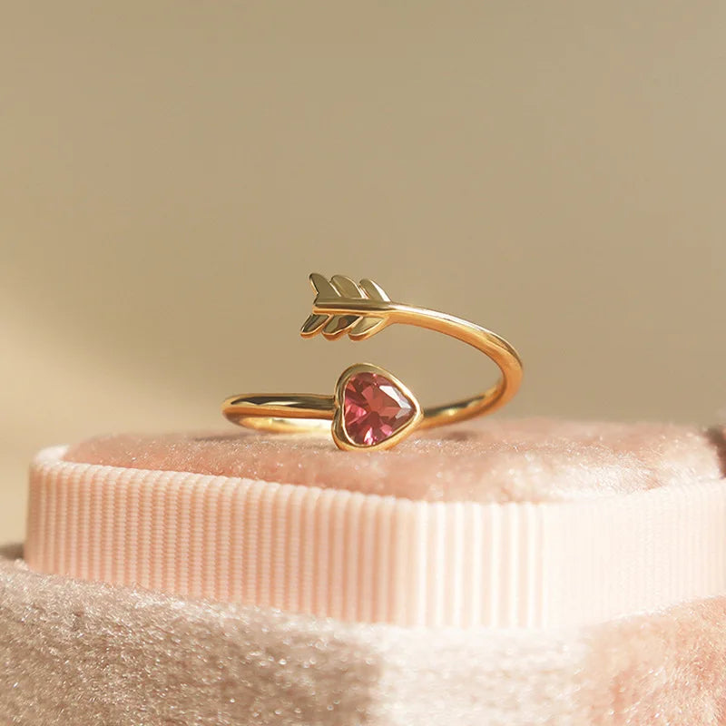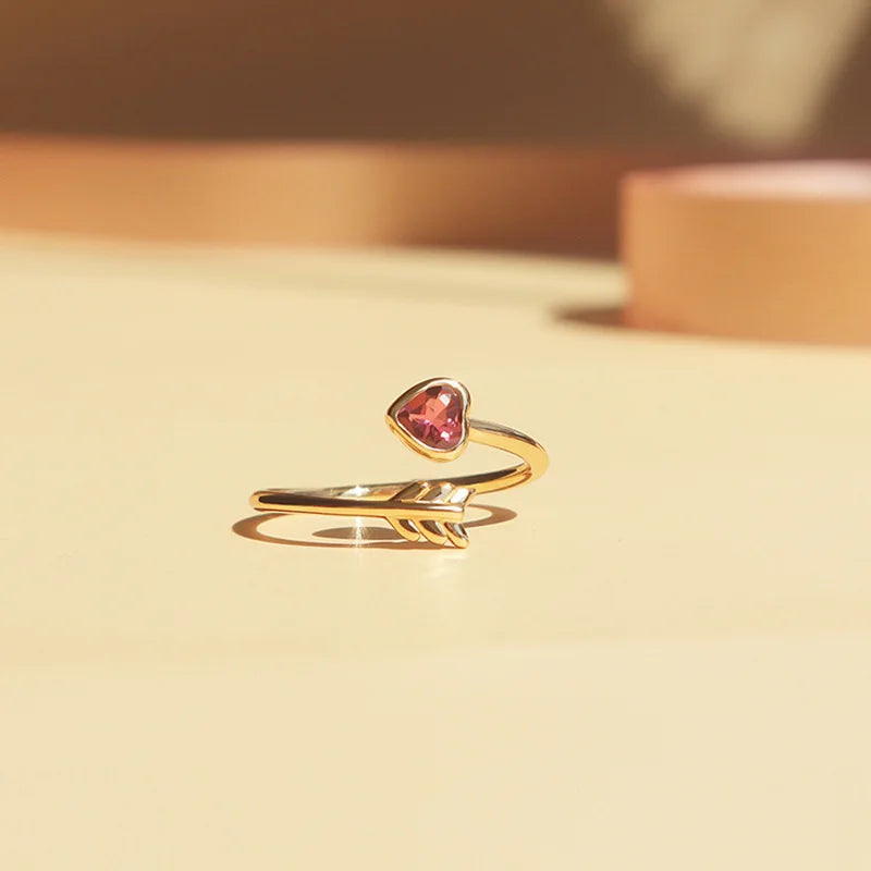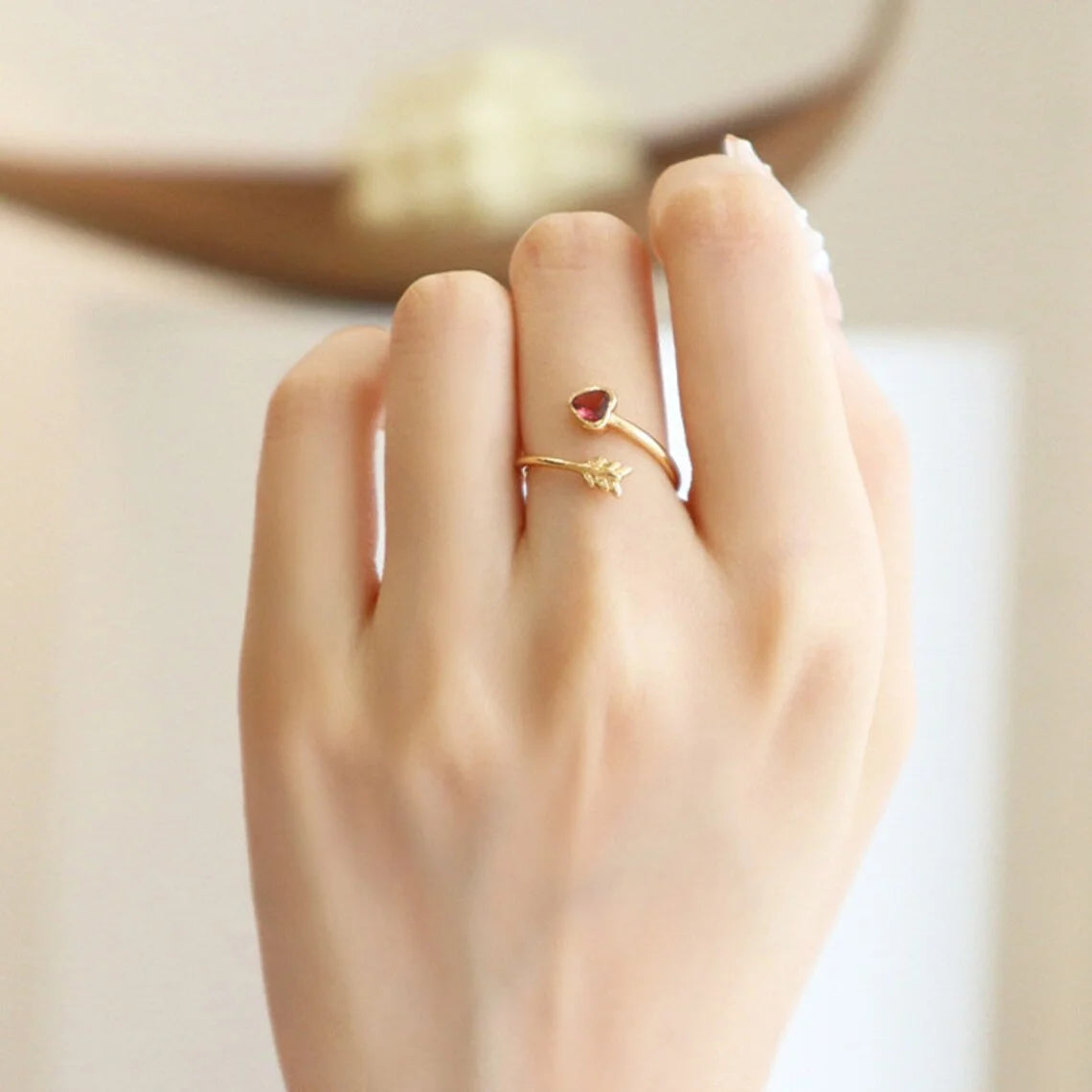 Minimalist Gold Tourmaline Heart Adjustable Ring Dainty Copper Zirconia Gold Valentine Rings Gift for Girl