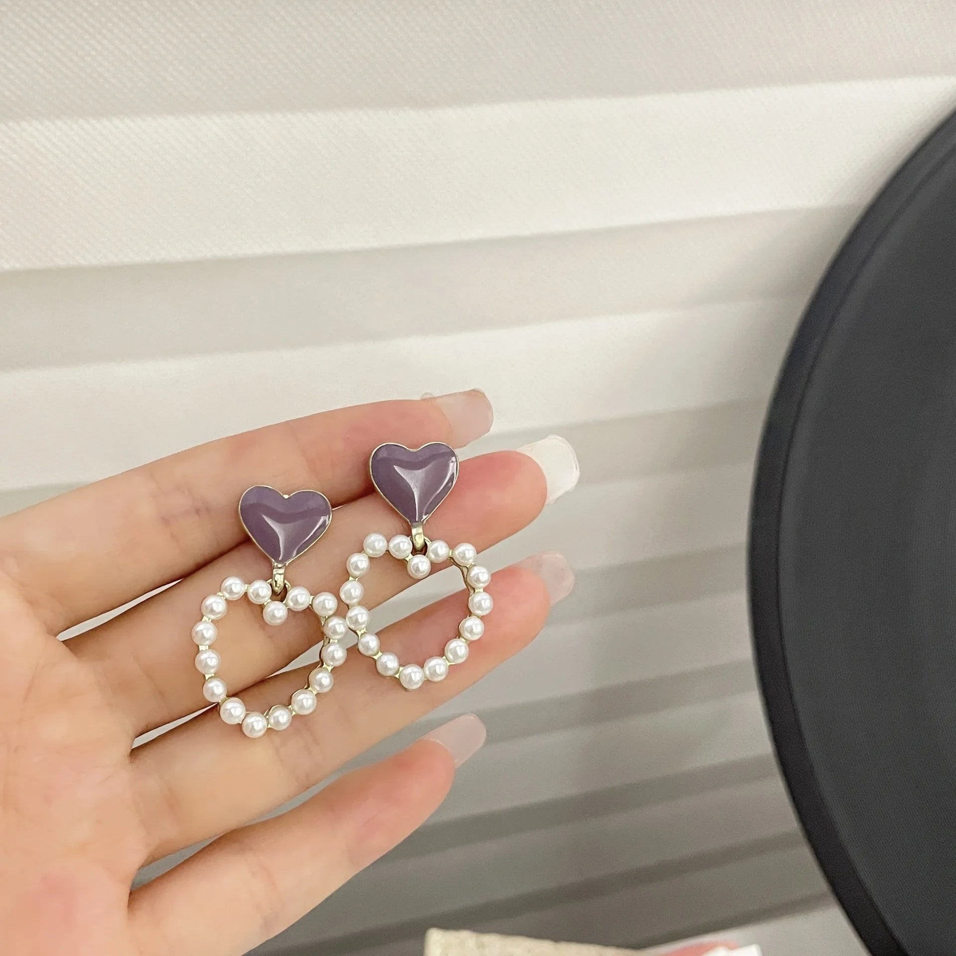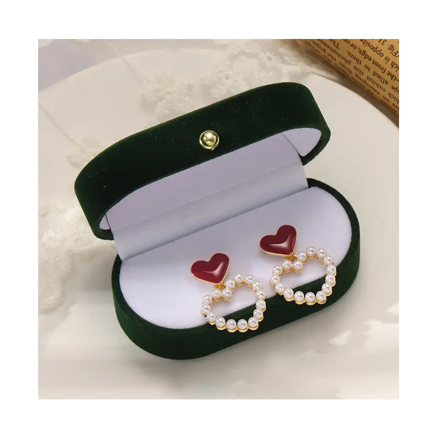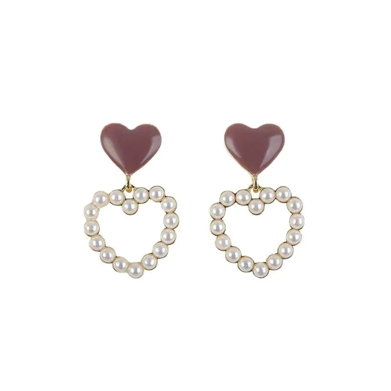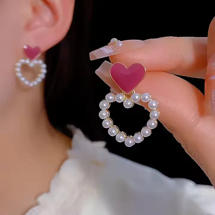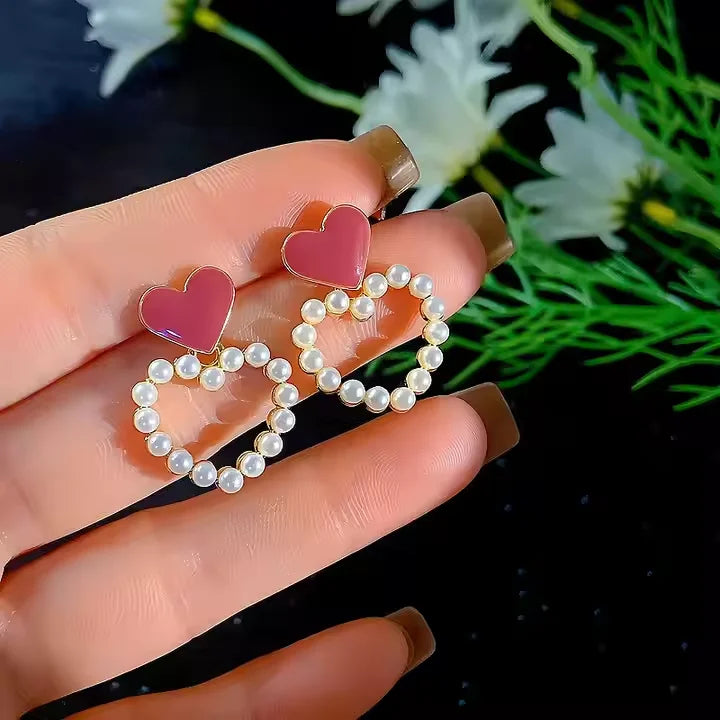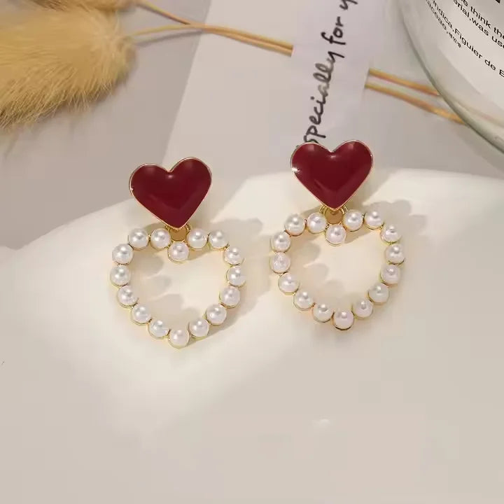 2025 Trending Product Red Heart Earrings for Women Jewelry Vintage Gold Plated Pearls Studs Earrings