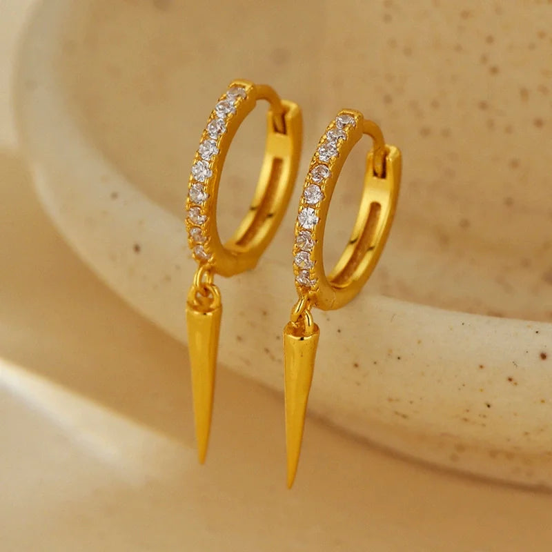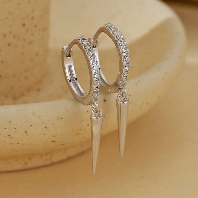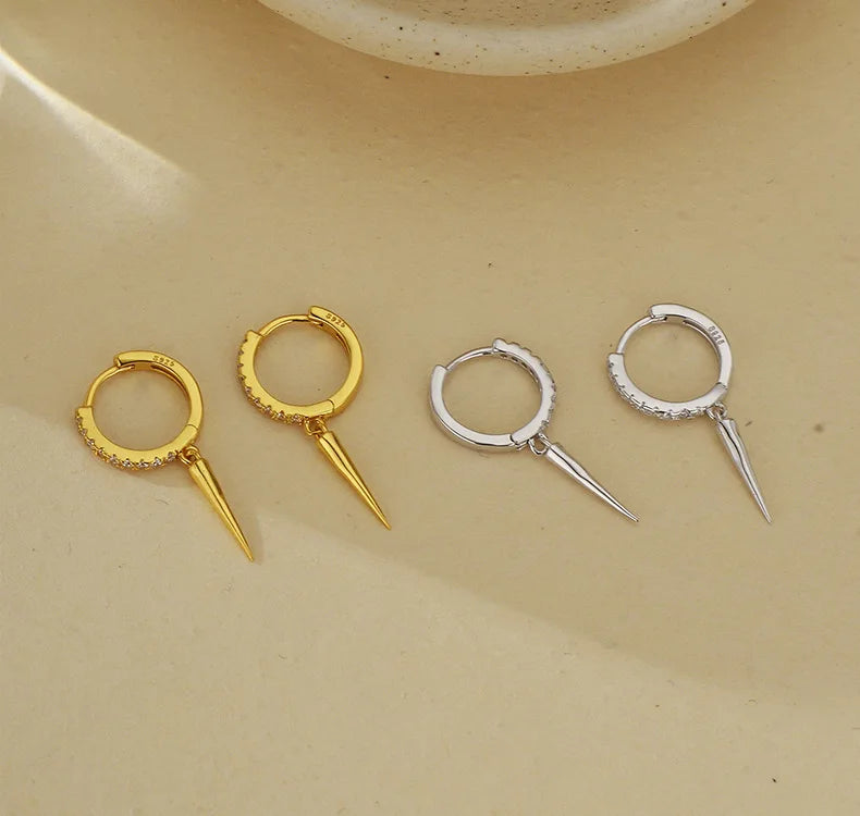 2025 Trending Product Jewelry 925 Sterling Silver Rivet Spike Earrings with Zirconia Adjustable Dangle Hoops Earrings for Women