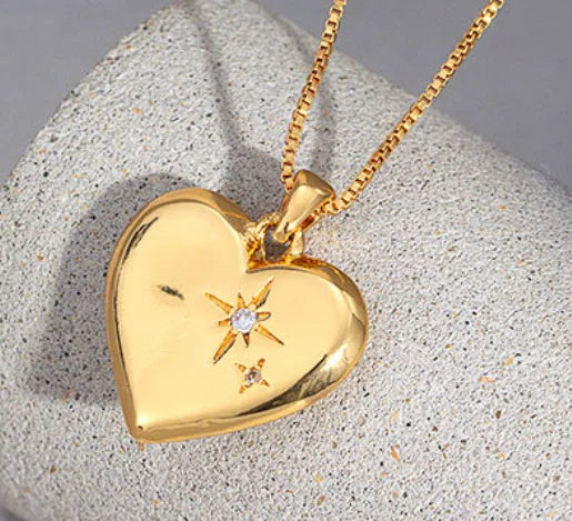 2025 Trending Product Jewelry Copper Plated Gold Color Valentine Polished Love Heart Locket Pendant for Women's Gift