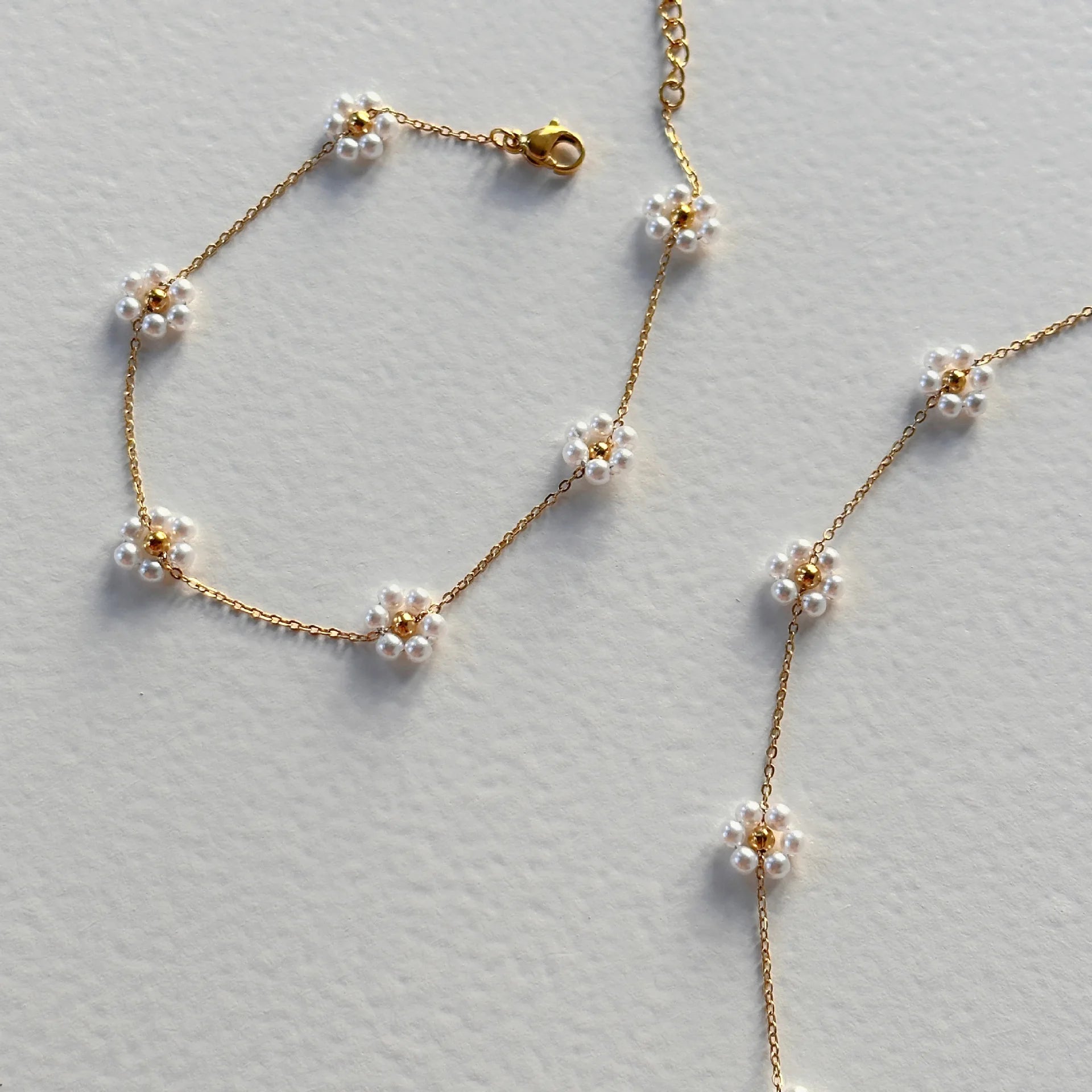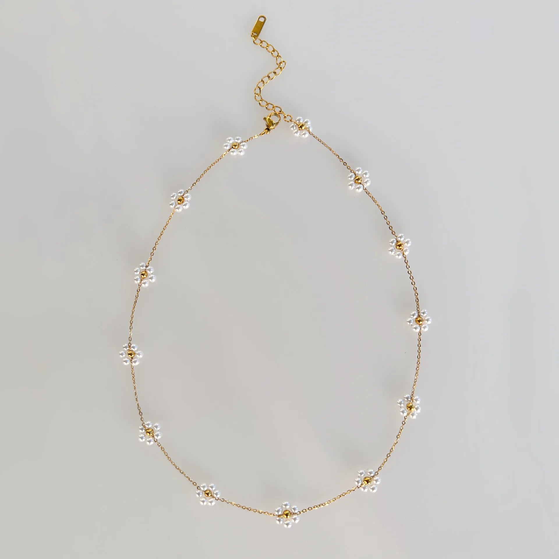 2025 New Titanium Steel Plated Women Necklace Minimalist Style Shell Pearl Flower Necklace for Jewelry