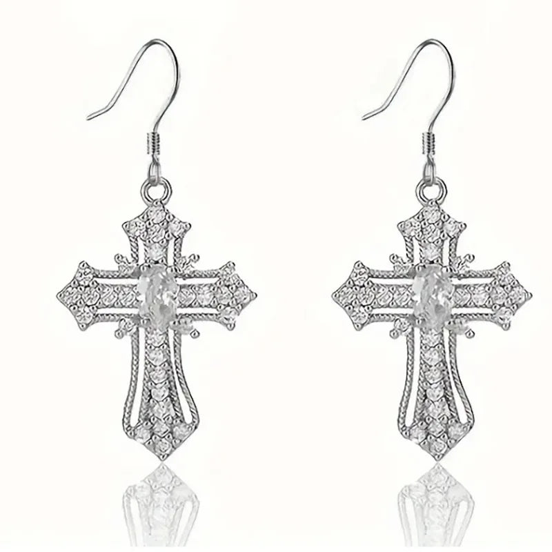 2025 Simple Fashion Women Gift Zircon Cross Vintage Punk Zircon Cross Pendant Necklaces for Women