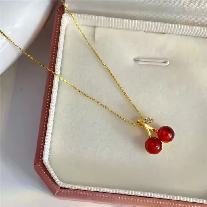 2025 Vintage Hot Cherry Gold Pendant Necklace & Earrings Set Beaded Bracelet Chain for Women's Special Occasions Gift