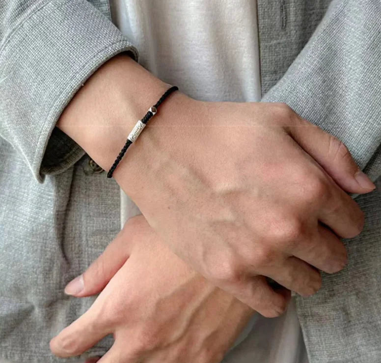 S925 Sterling Silver Handmade Braided Rope Charm Bracelet for Men Women Adjustable Koi Fish Lucky Couple Bracelet