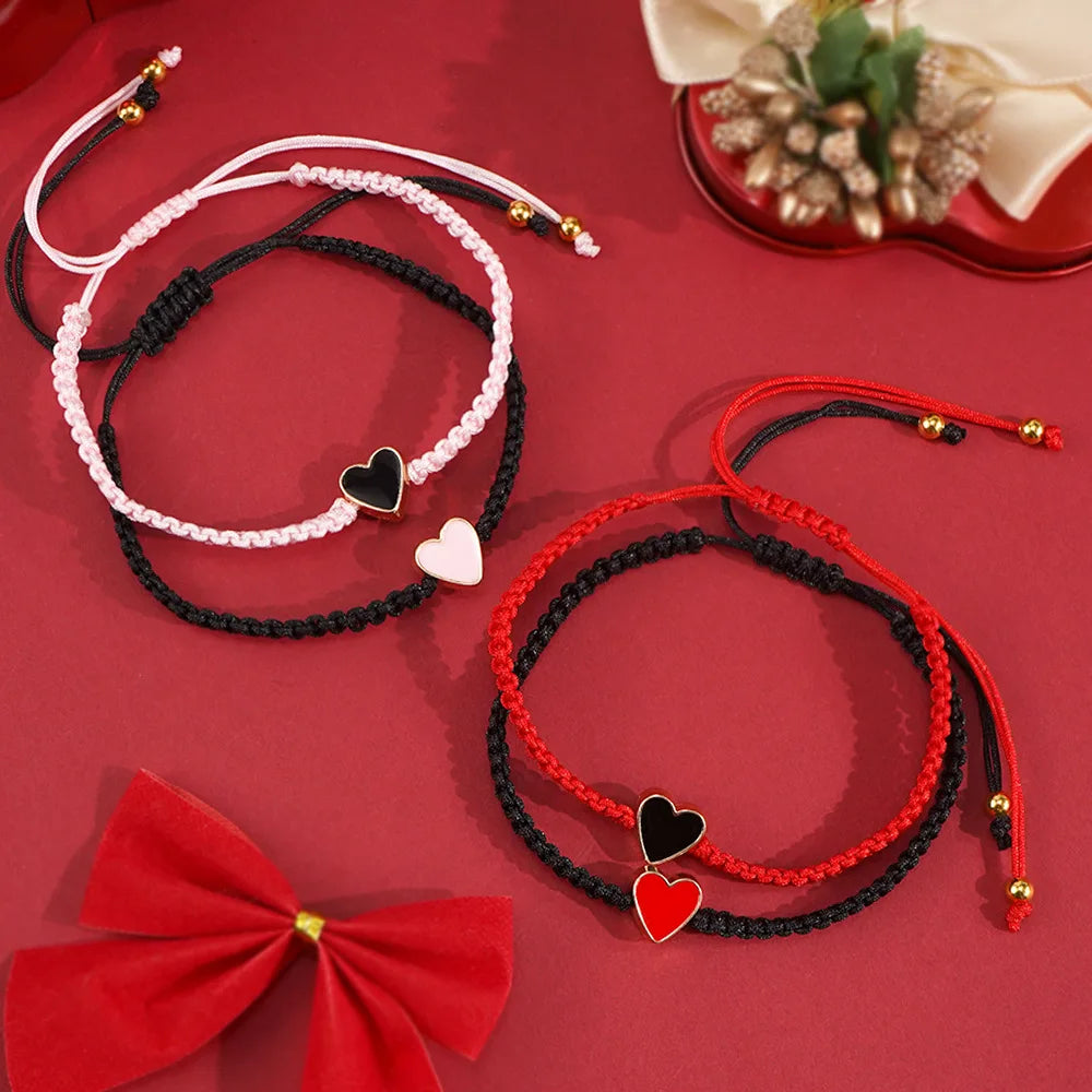 Simple Adjustable Hand Jewelry Braided Woven Heart Bracelet Minimalist New Style Fashion Lovely Heart Couple Bracelet