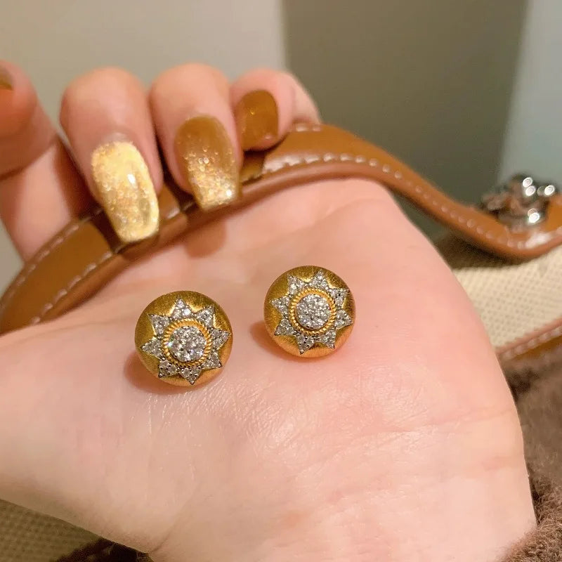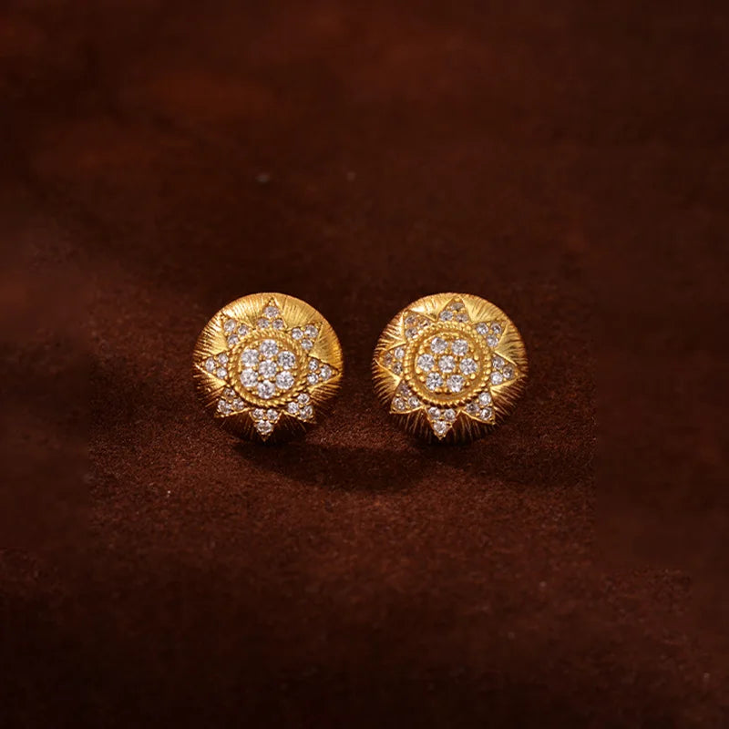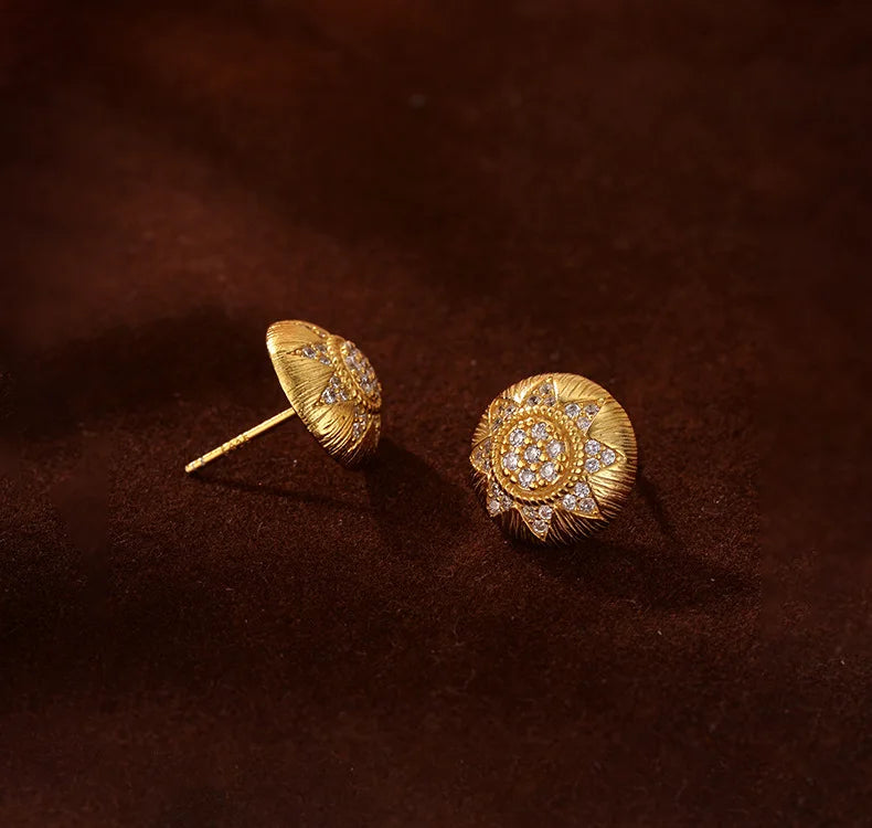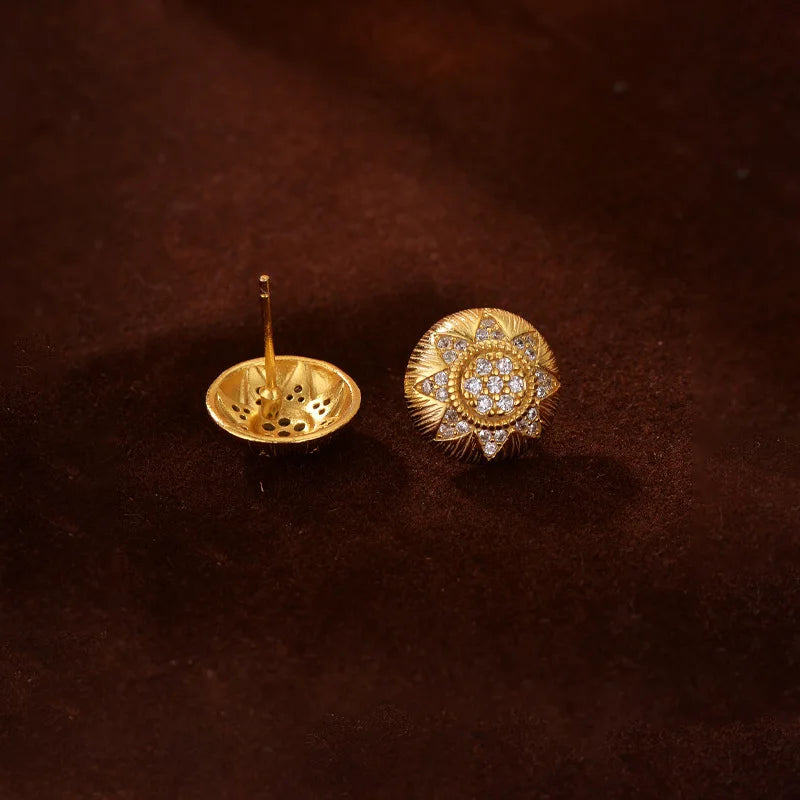 925 Sterling Silver 18k Plated Statement Earrings Sunflower Geometric Zircon Stud Earrings Women's Jewelry Gift for Wholesale