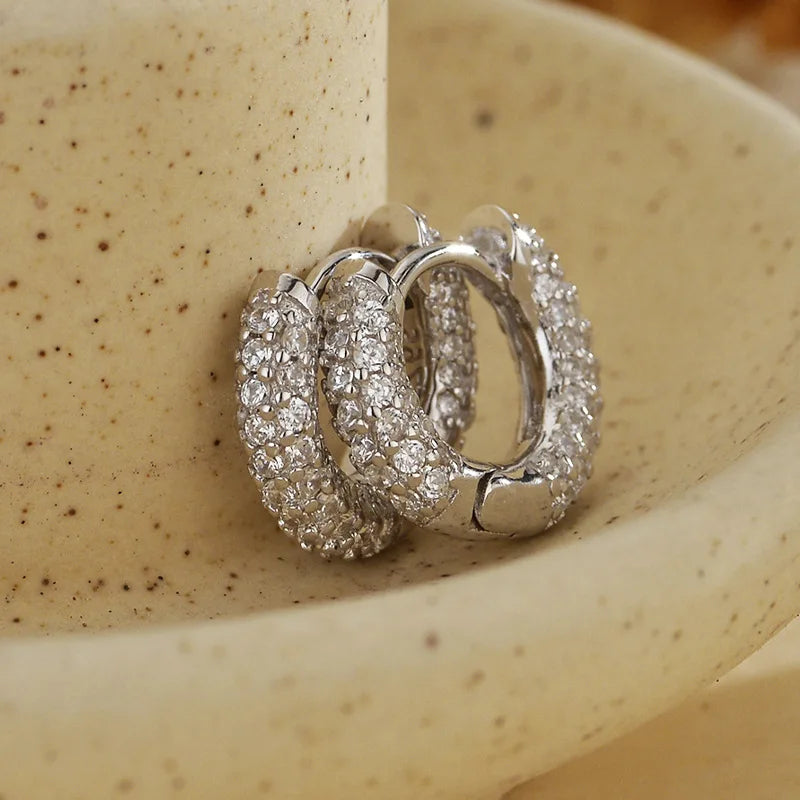 925 Sterling Silver Hoop Earrings Luxury Minimalist Sparkling Iced Design for Men Women Hypoallergenic Everyday Jewelry