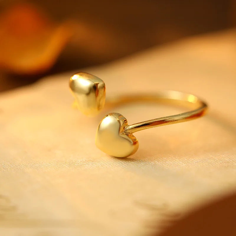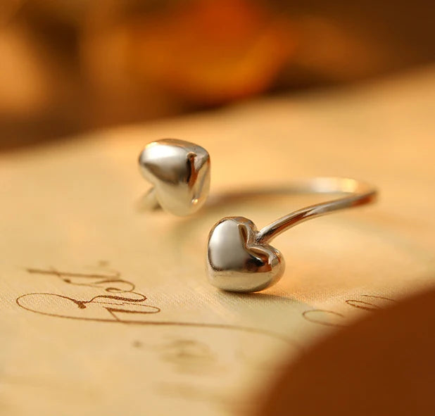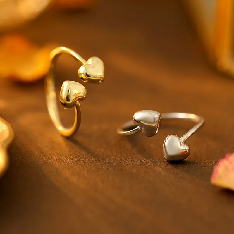 Trendy Double Heart Stacking Bypass Ring Classic Stainless Steel Double Heart Stacking Open Ring for Couple Valentine's Day