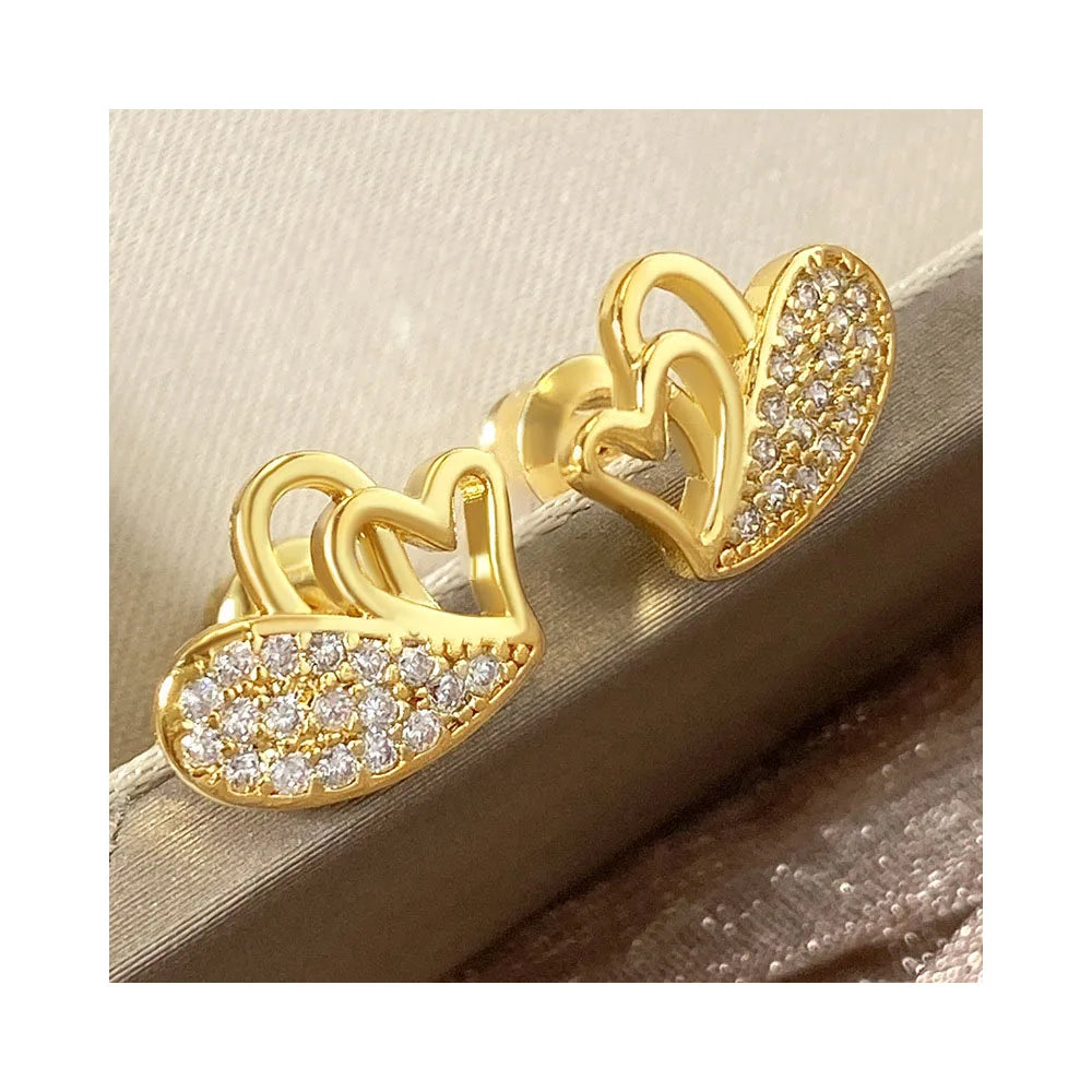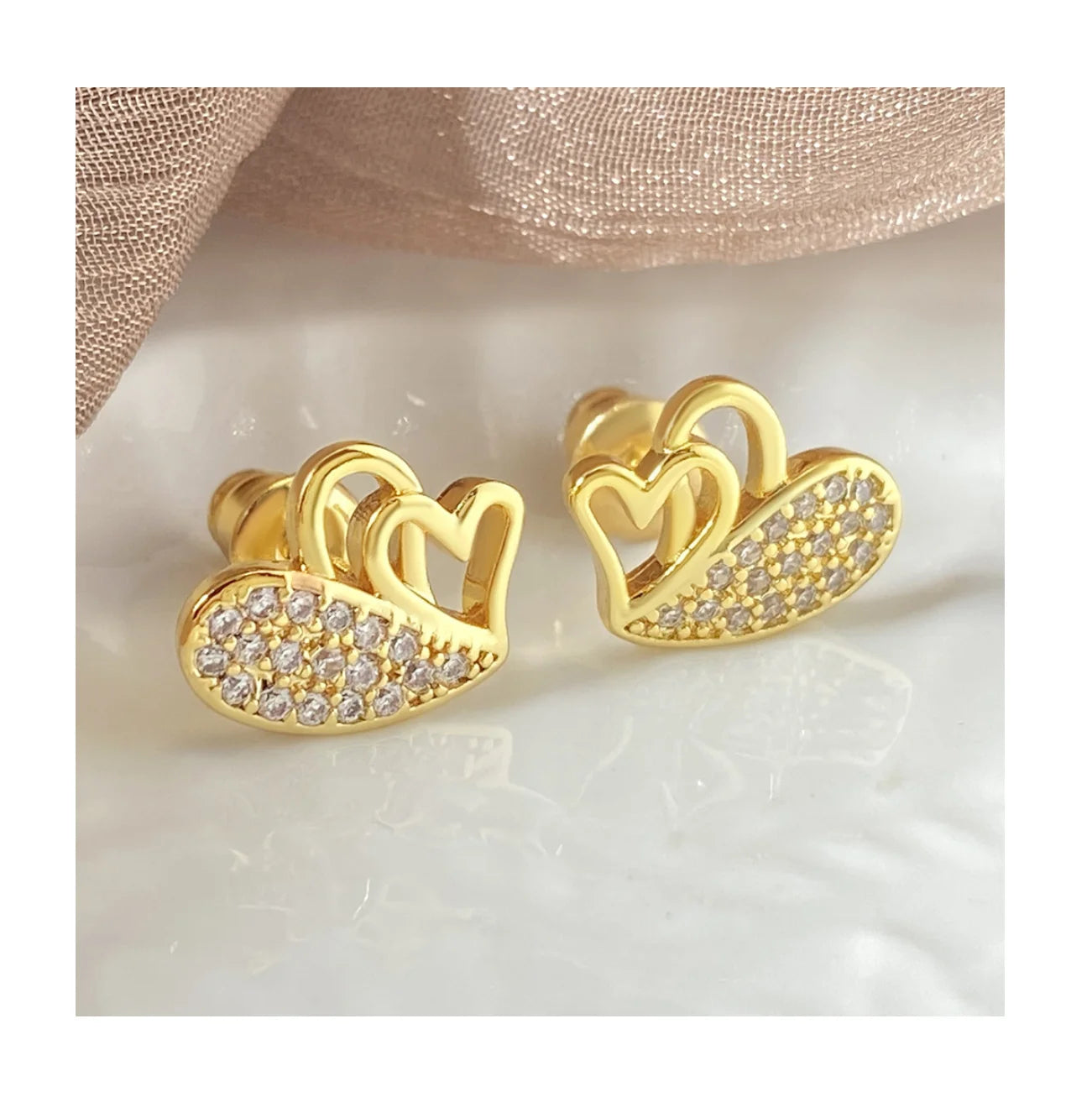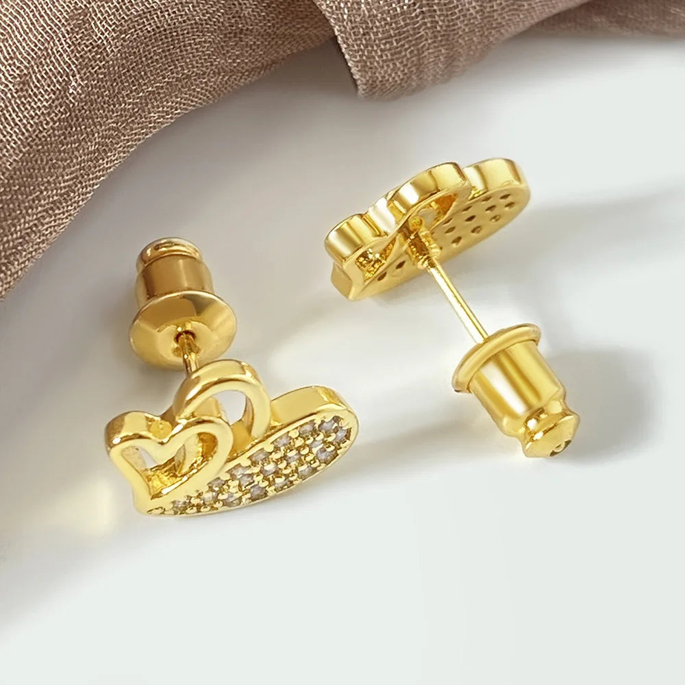 Trendy Girls' Heart-shaped Stud Earrings Minimalist Gold Plating Hollow Heart Studs Earrings for Daily Wear
