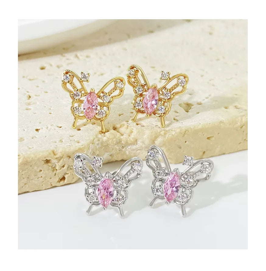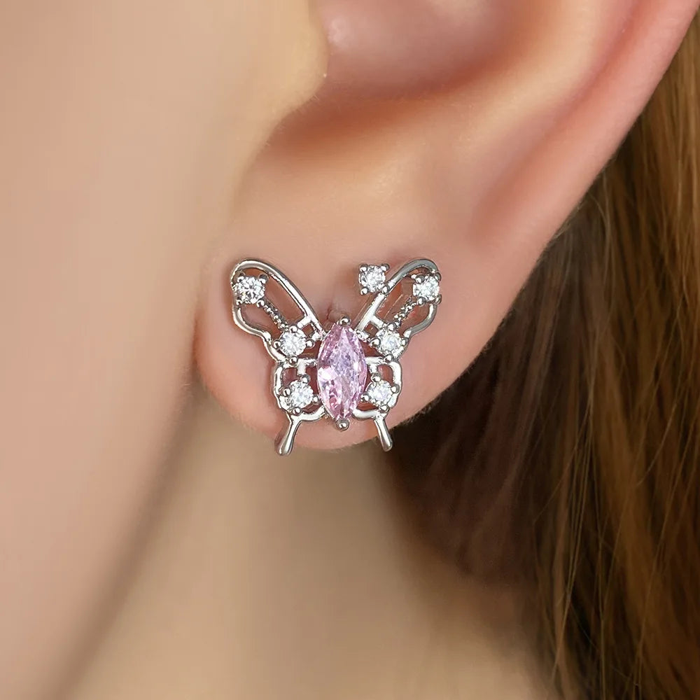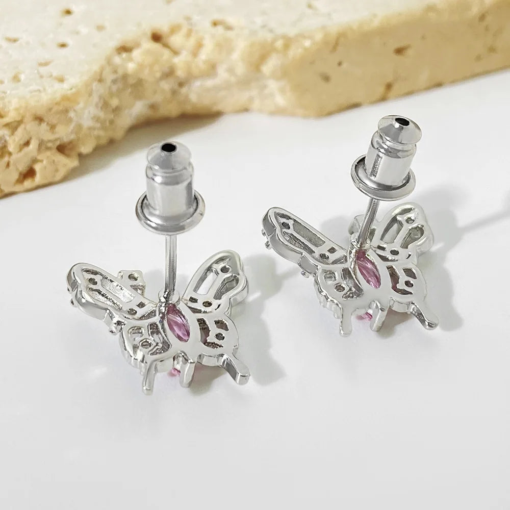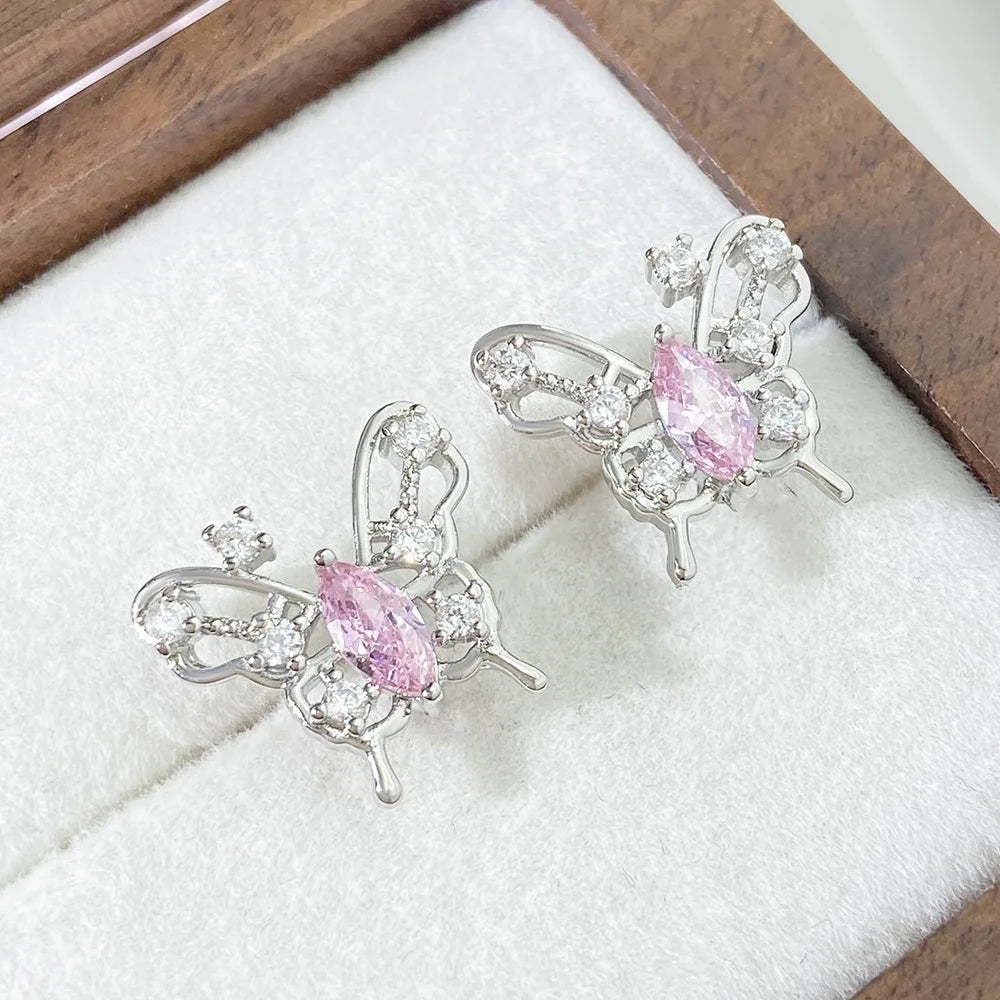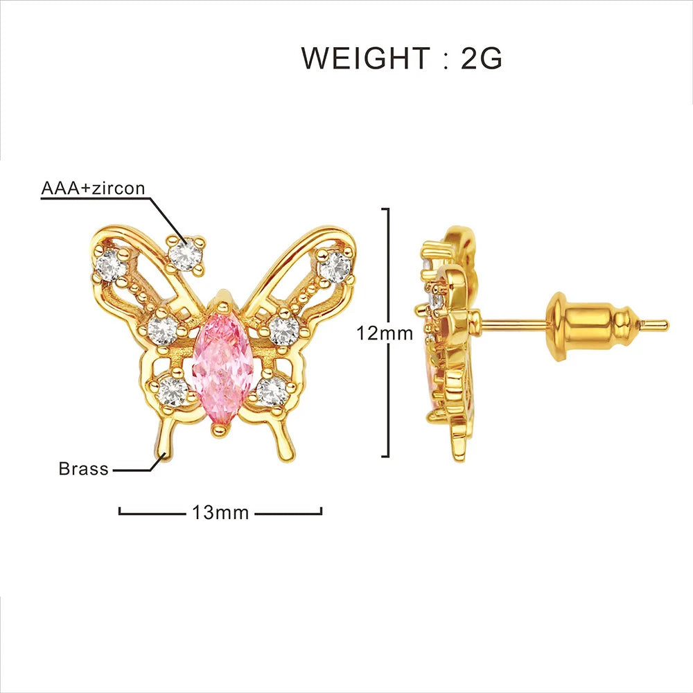 Trendy Gold-plated Starry Butterfly Stud Earrings for Women Fashion Pink Zircon Earrings Gifts for Valentines Day