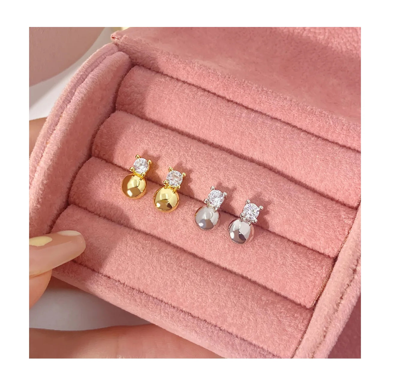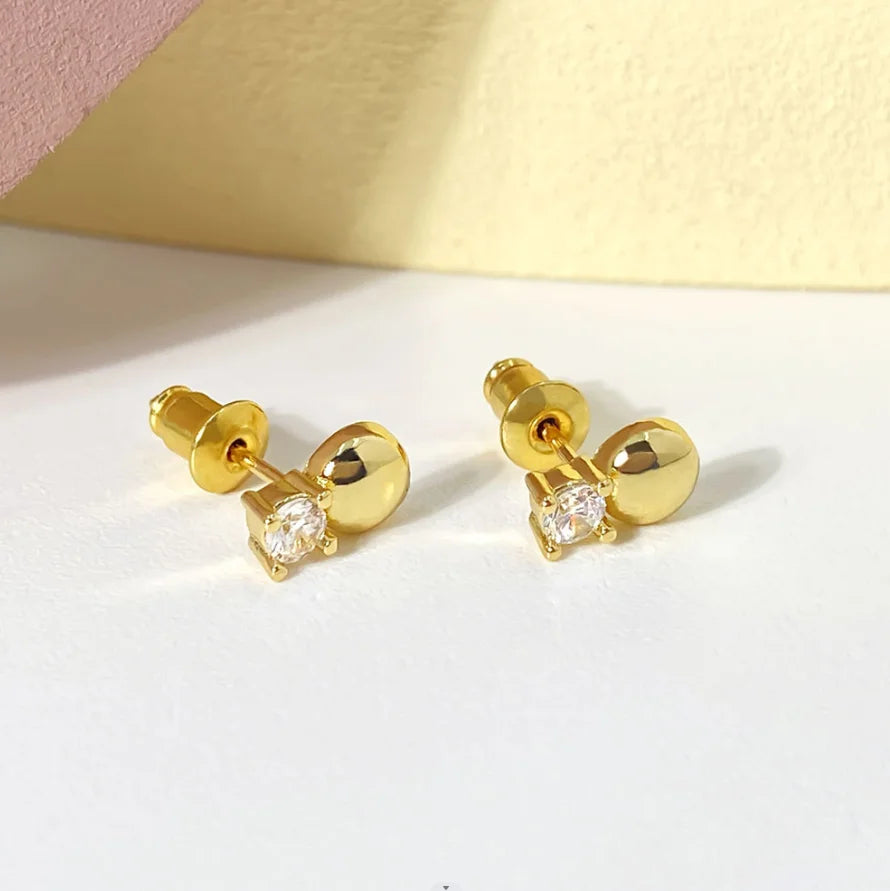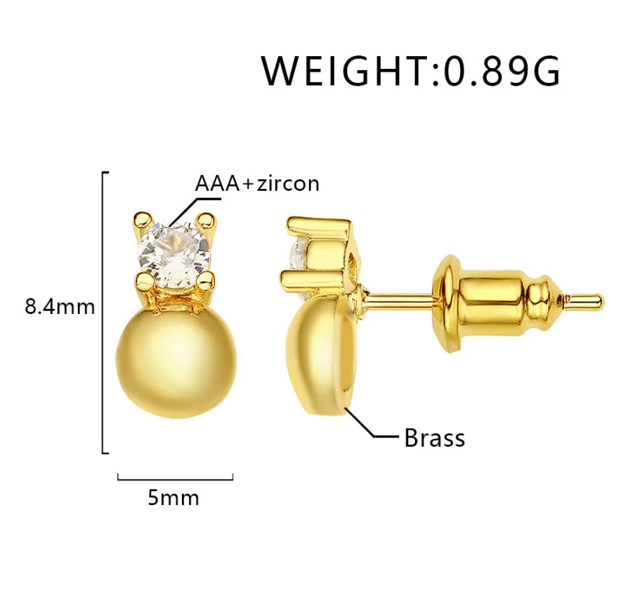 Trendy Gold-plated Mini Stud Earrings Minimalist Cubic Zirconia Small Studs Mini Round CZ Earring for Women
