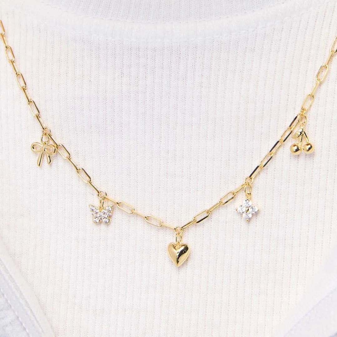 Trendy Gold Plated Charm Butterfly Heart Cherry Necklaces for Women Cute Brass and Silver Plated Statement Necklace Jewelry
