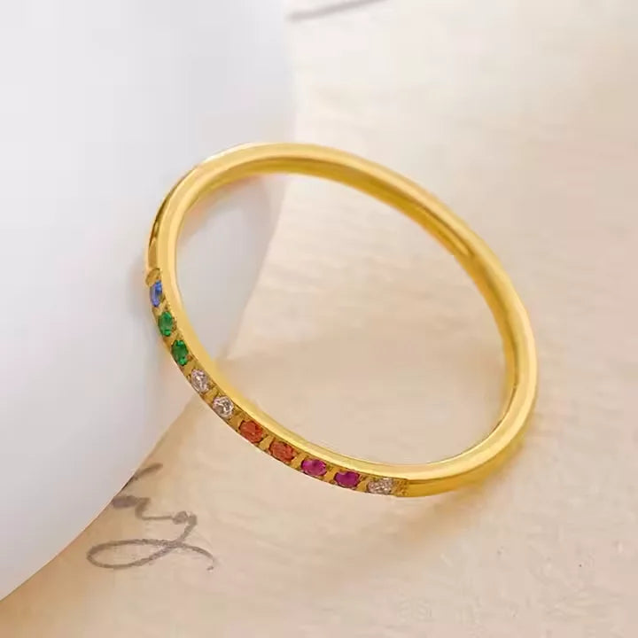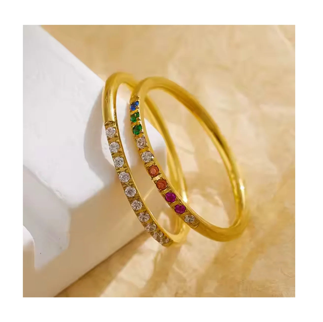 Trendy Stainless Steel Rainbow Stone Rings for Women Fashion Gold Plated Colorful Diamond Wedding Rings Couple Set