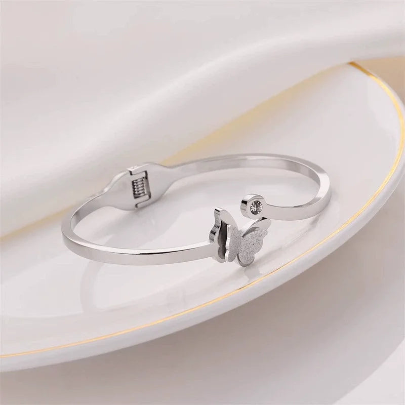 Trendy Rose Gold Plated Titanium Steel Butterfly Pendant Necklace Set With Matching Earrings and Ring