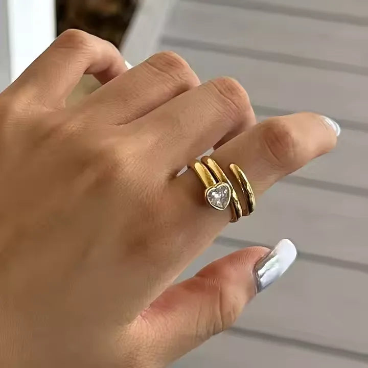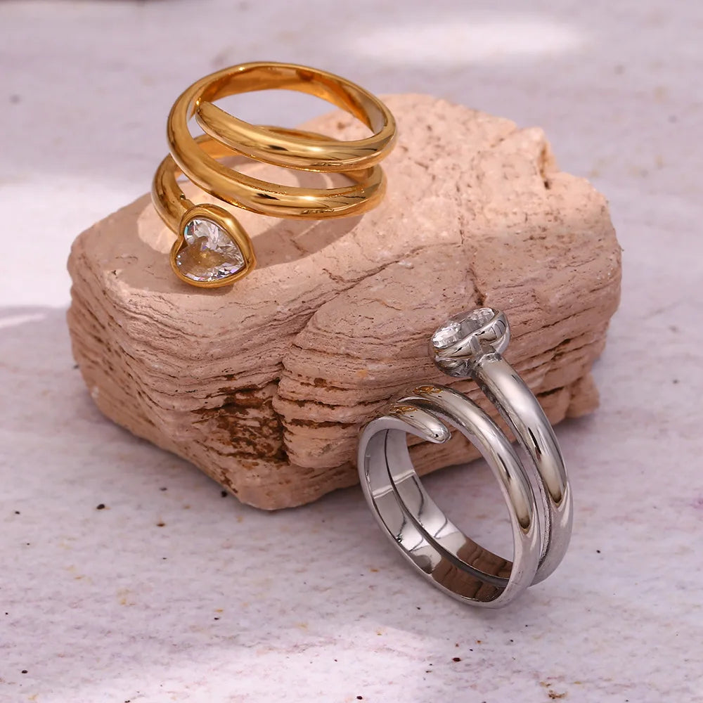 Valentine Gift Heart Shape Silver Rings for Couple Elegant Zircon Love Spiral Wrap Around Polished Statement Ring Jewelry