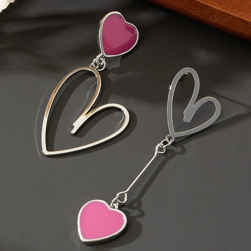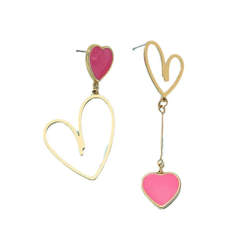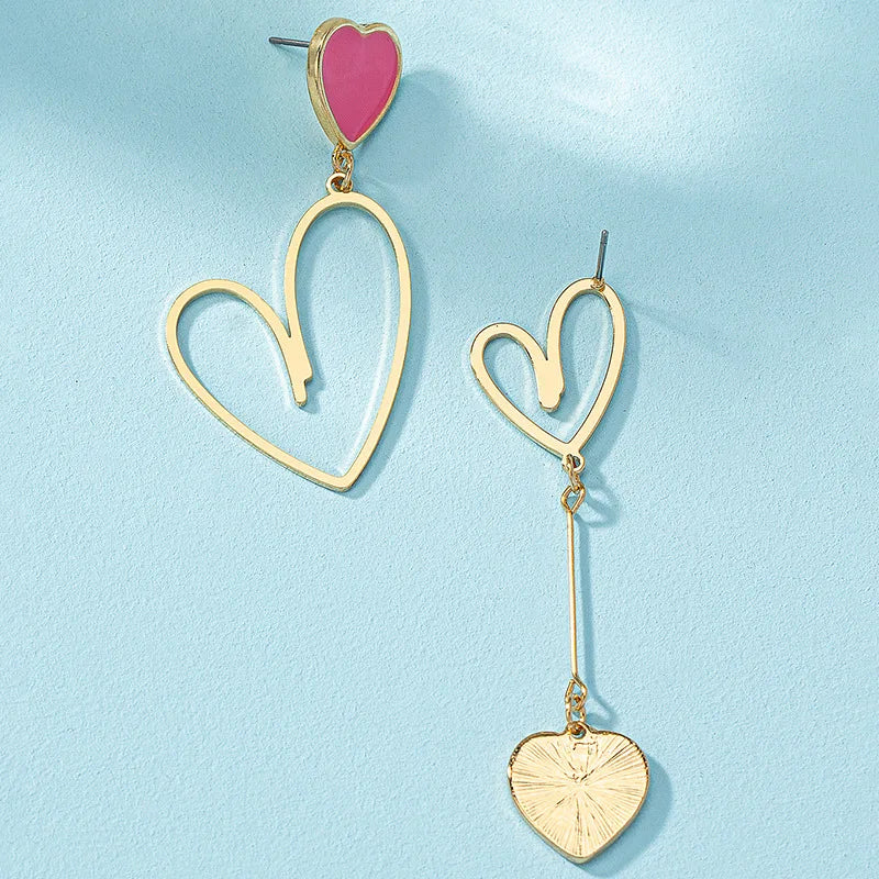 Unique Gold Plated Asymmetry Hollow Heart Dangle Drop Earrings for Women Hypoallergenic Jewelry Valentine's Day Gifts