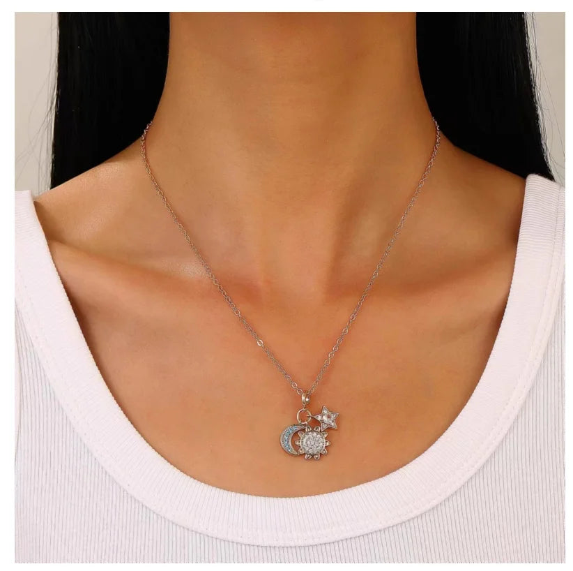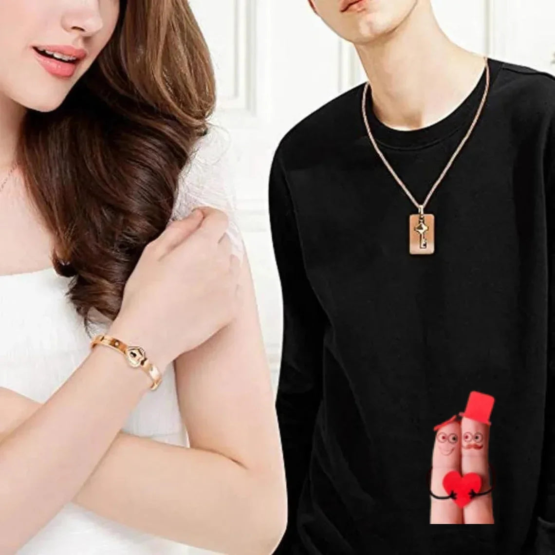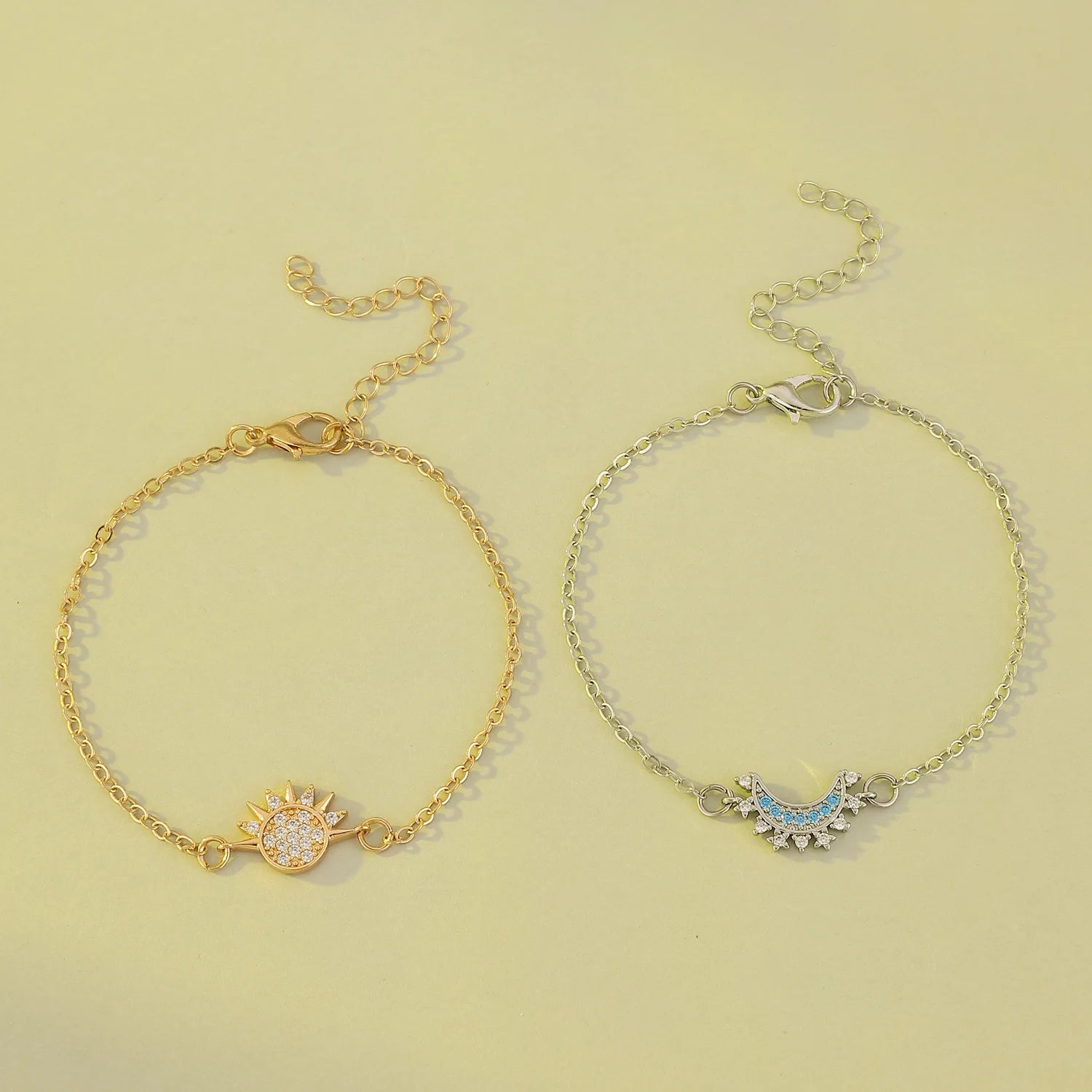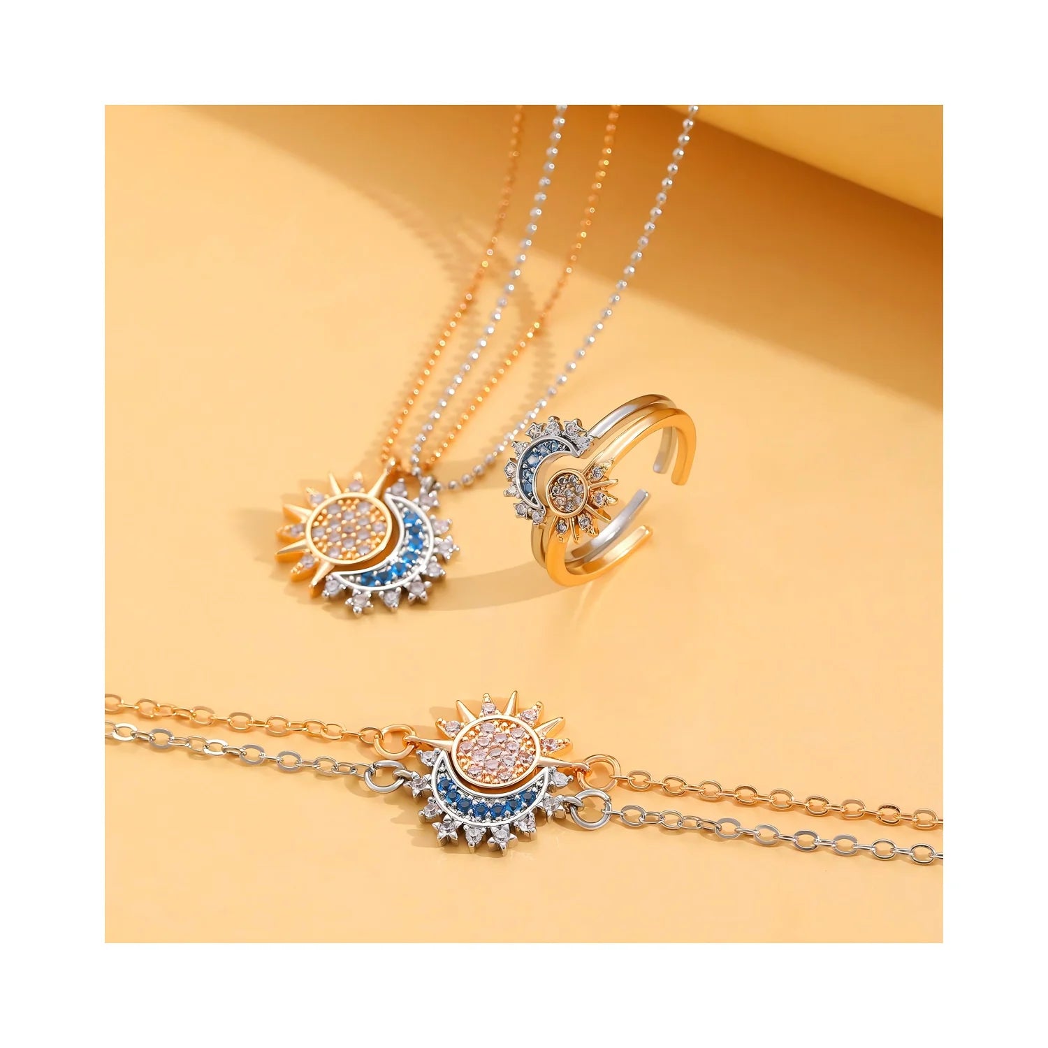 Valentines Day Gift 2025 Fashion Jewelry Sets Sun and Moon Bracelets Ring Matching Necklace for Couples