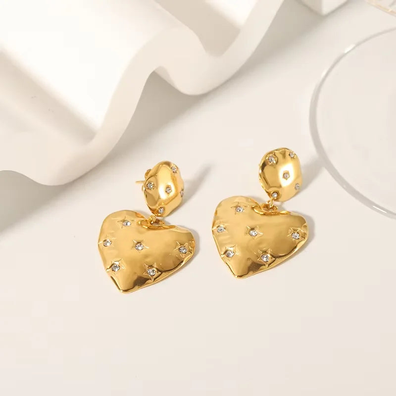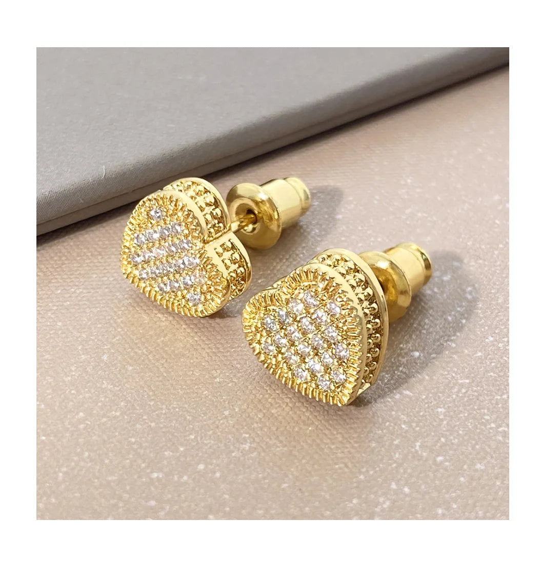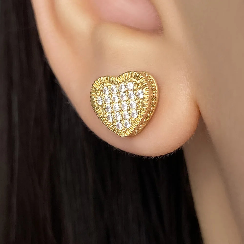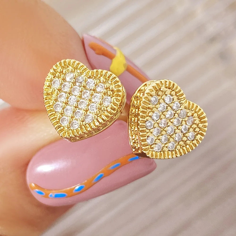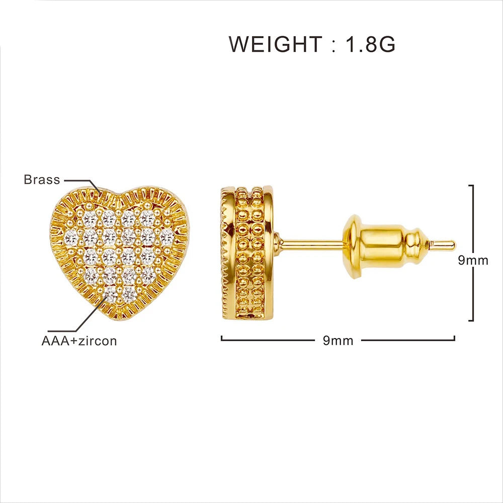 Valentine's Day Gift Jewelry Stainless Steel Heart Stud Earrings Elegant Cubic Zirconia Iced Out Heart Women Earrings Jewelry
