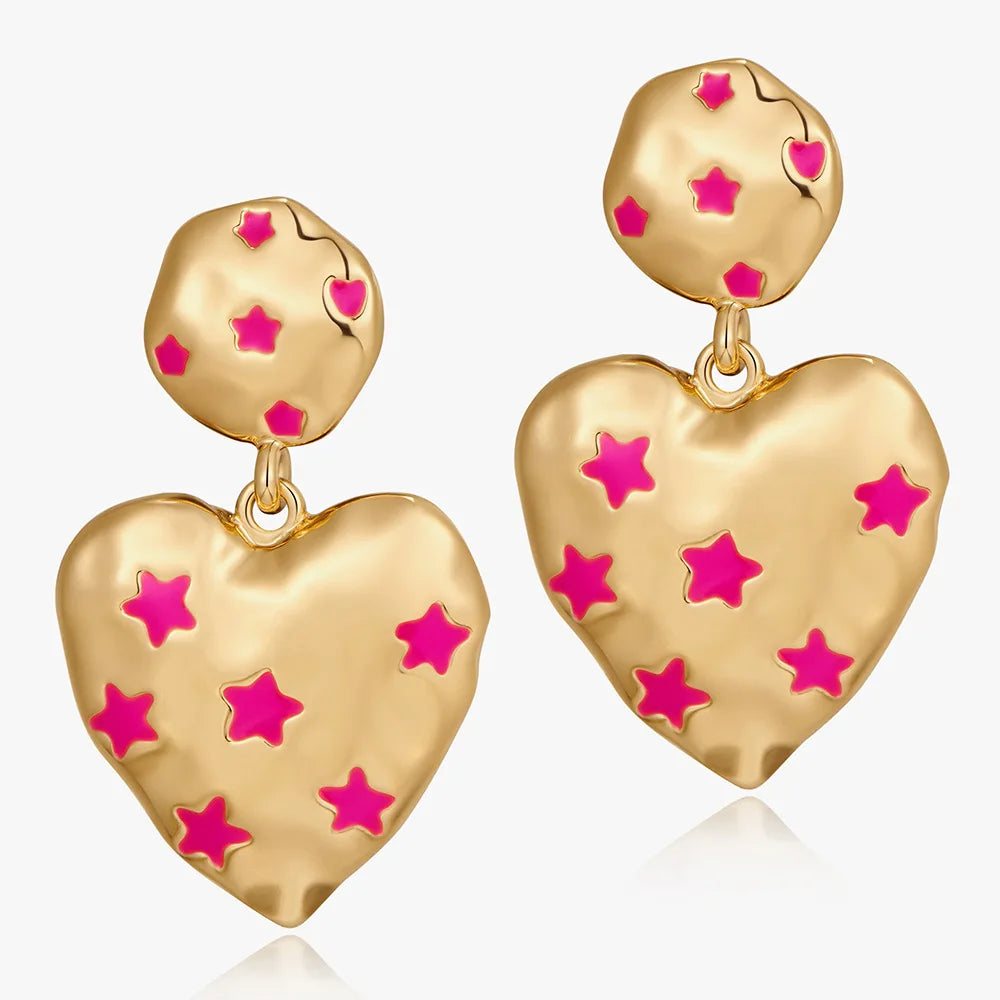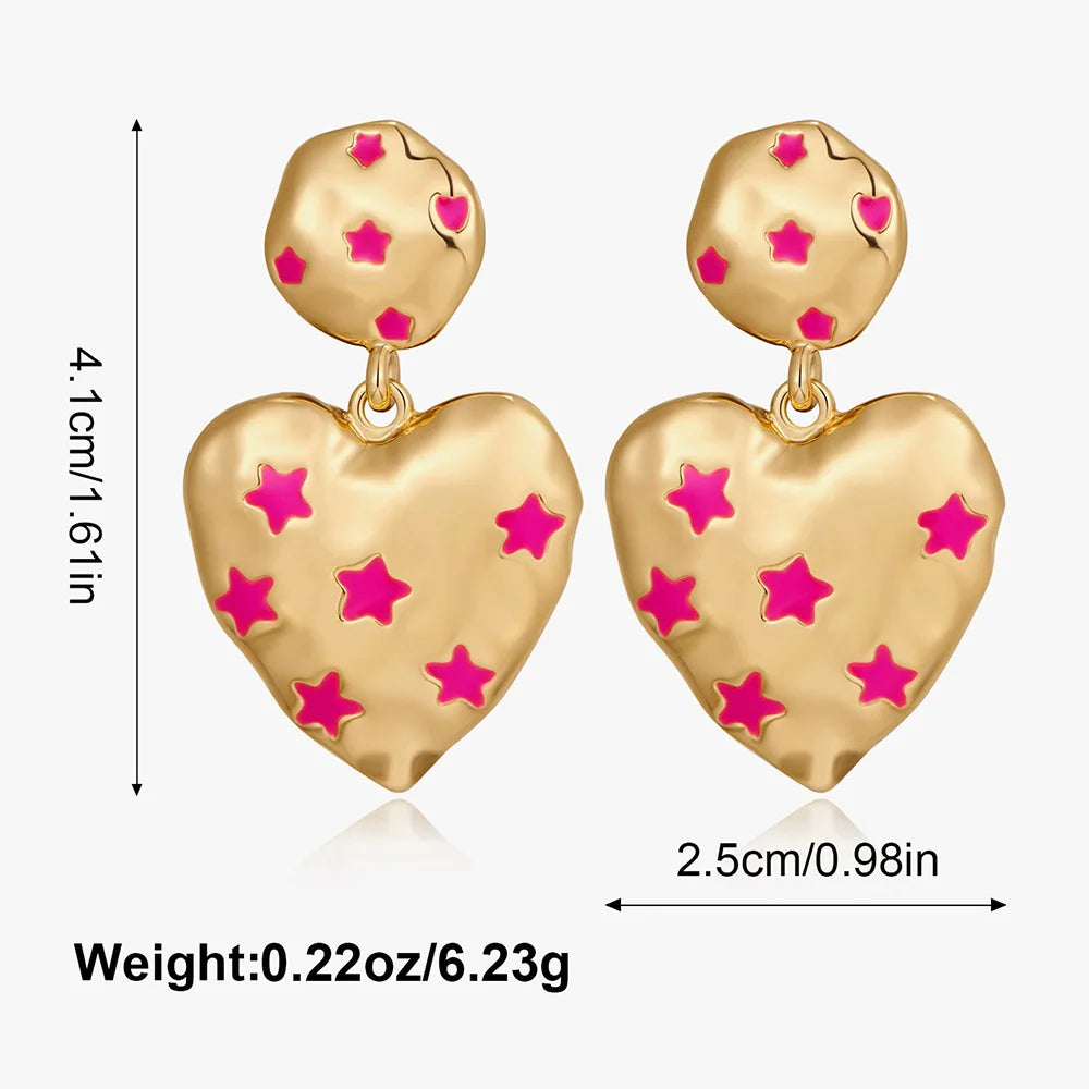 Valentine's Day Piercing Jewelry Gold Pink Heart Dangle Earrings for Women Fashion Statement Jewelry Gift