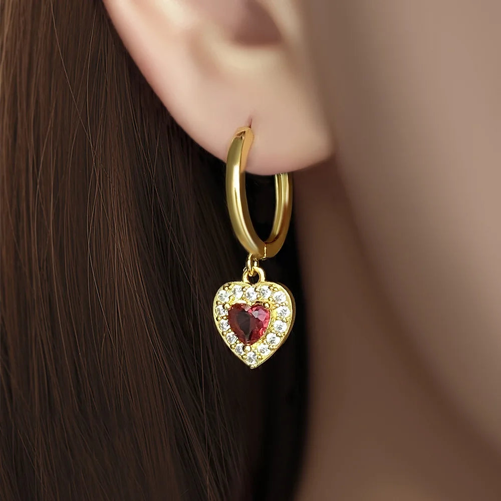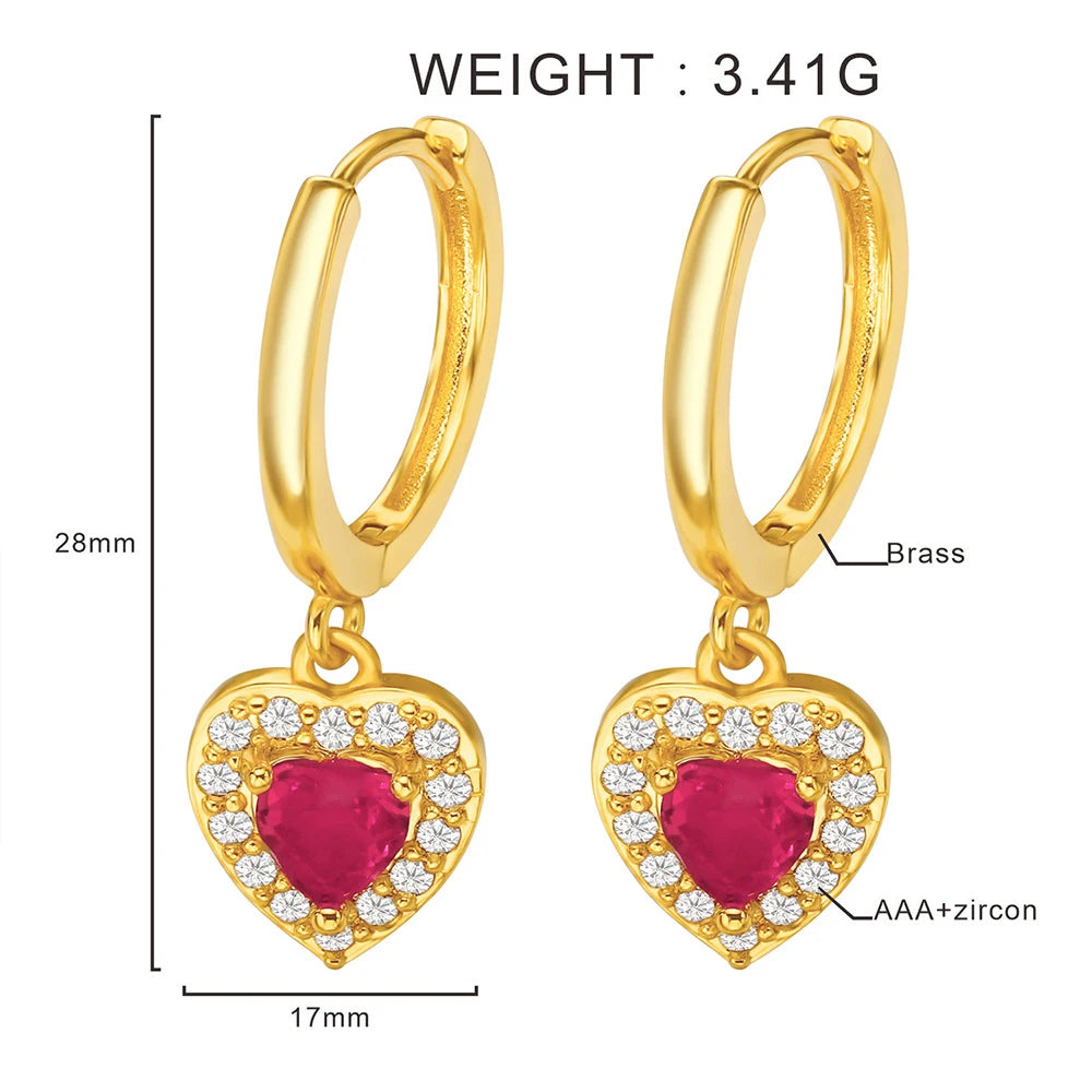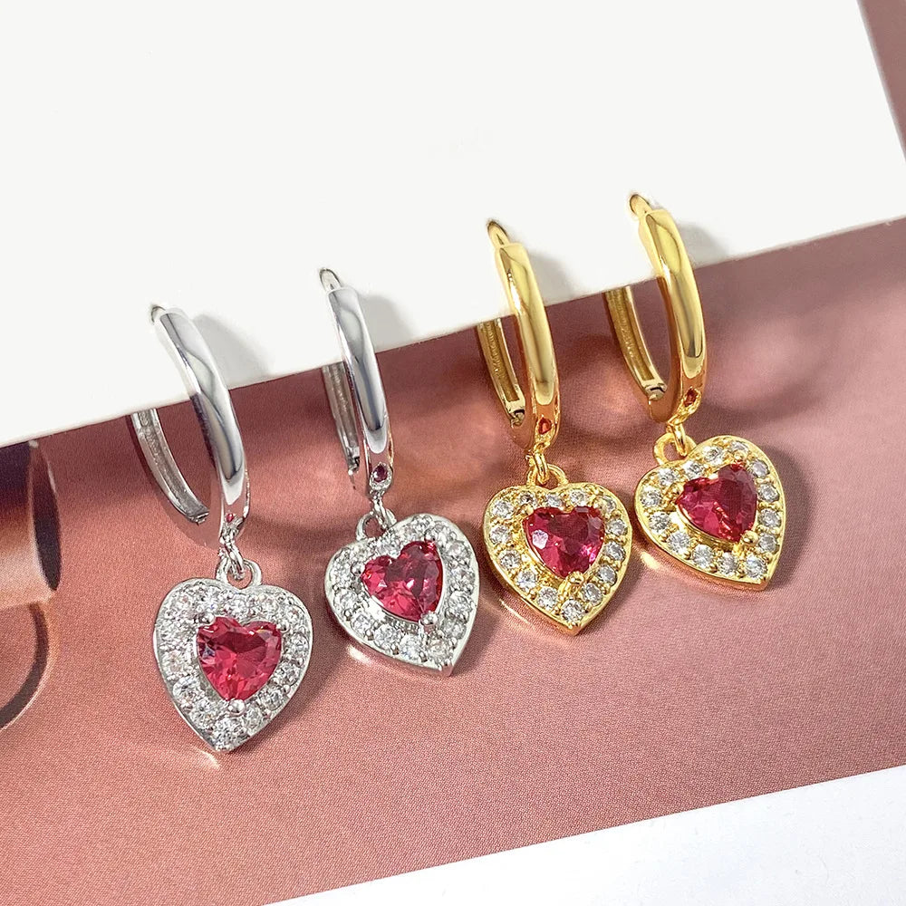 Valentine's Day Jewelry Set Gold Plating Heart Hoop Earrings Fashion Red Zircon Heart Hoop Earrings for Her Gift