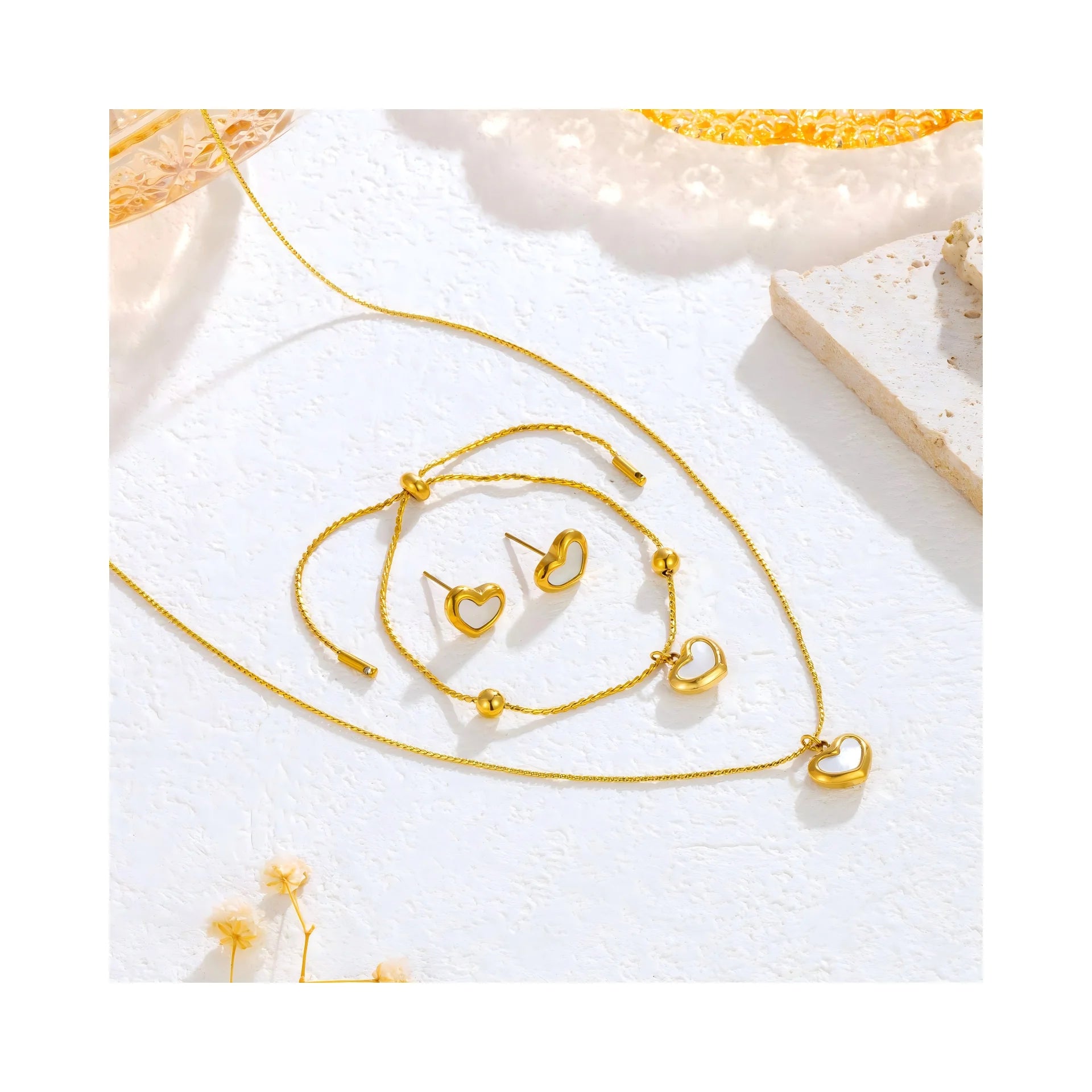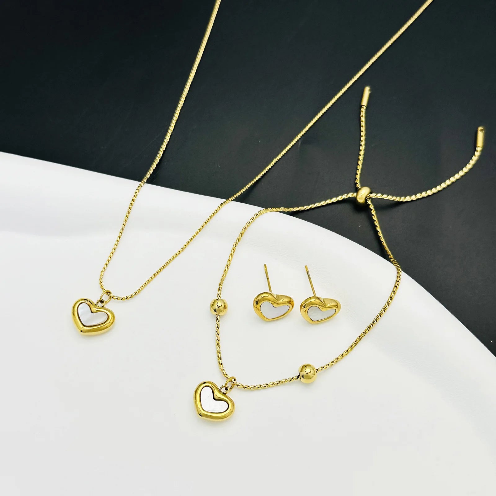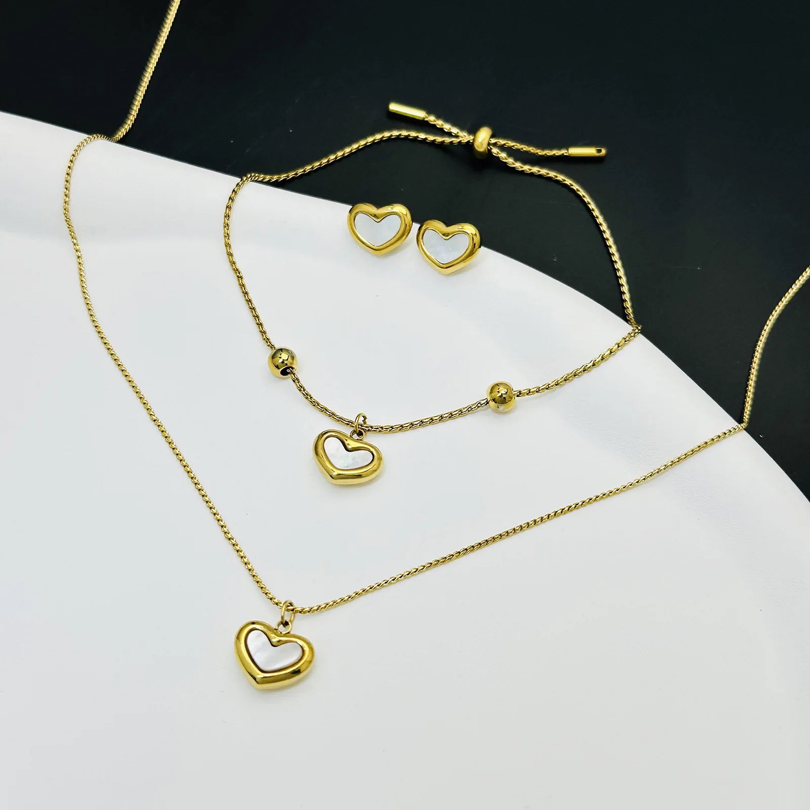 Valentines Day Gift 2025 Fashion Jewelry Sets White Sea Shell Heart Fashion Earing Bracelets Necklace Jewelry for Women
