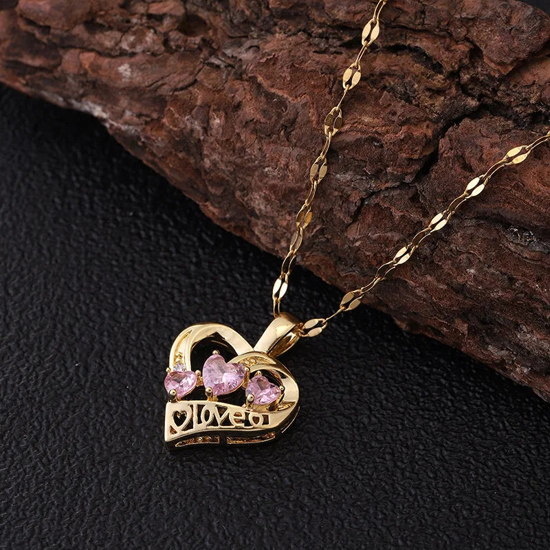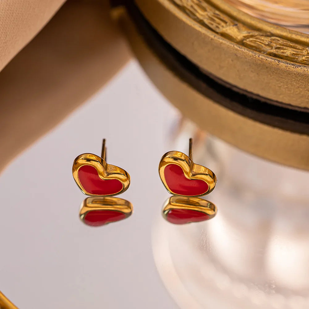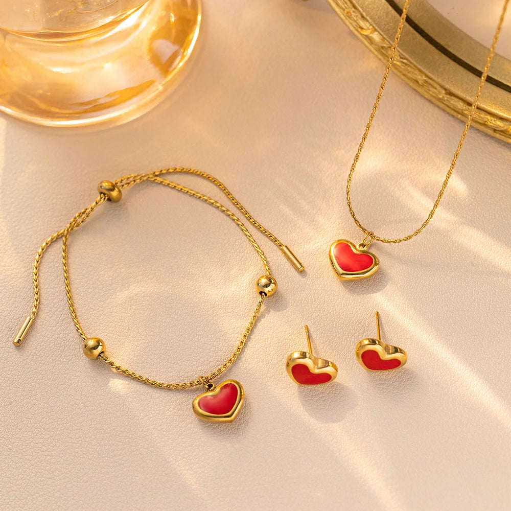 Valentine Jewelry Set for Woman Waterproof Titanium Steel Gold Plated Red Heart Drop Earrings and Necklaces Set