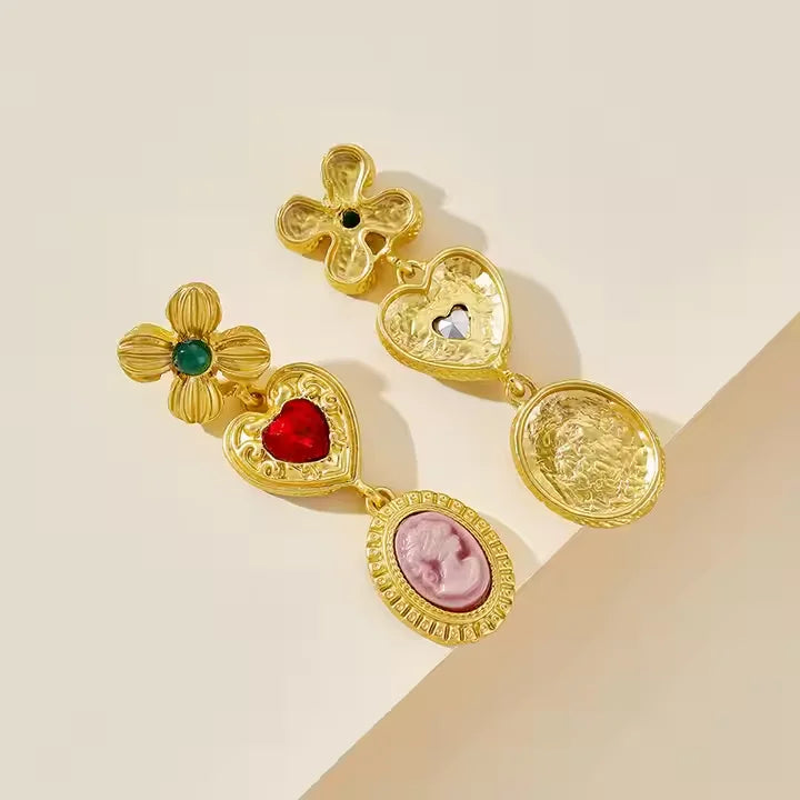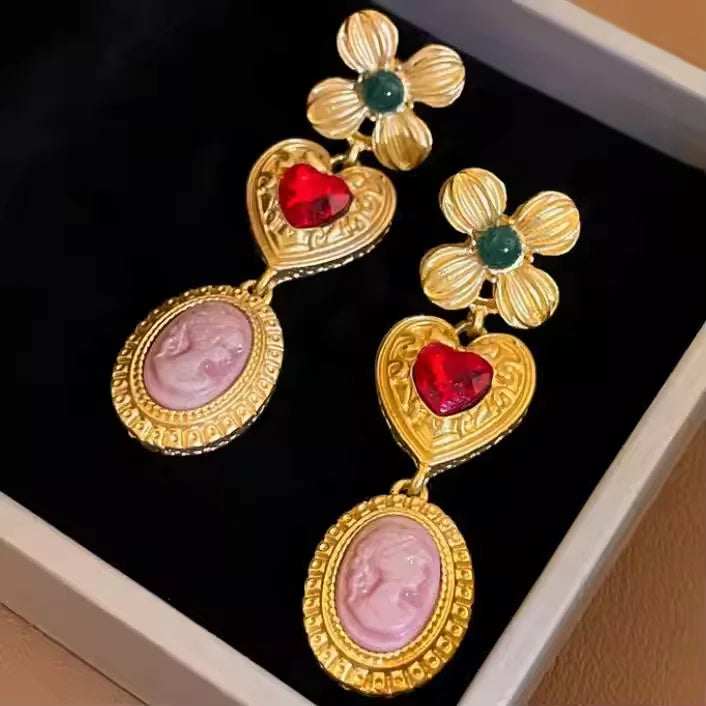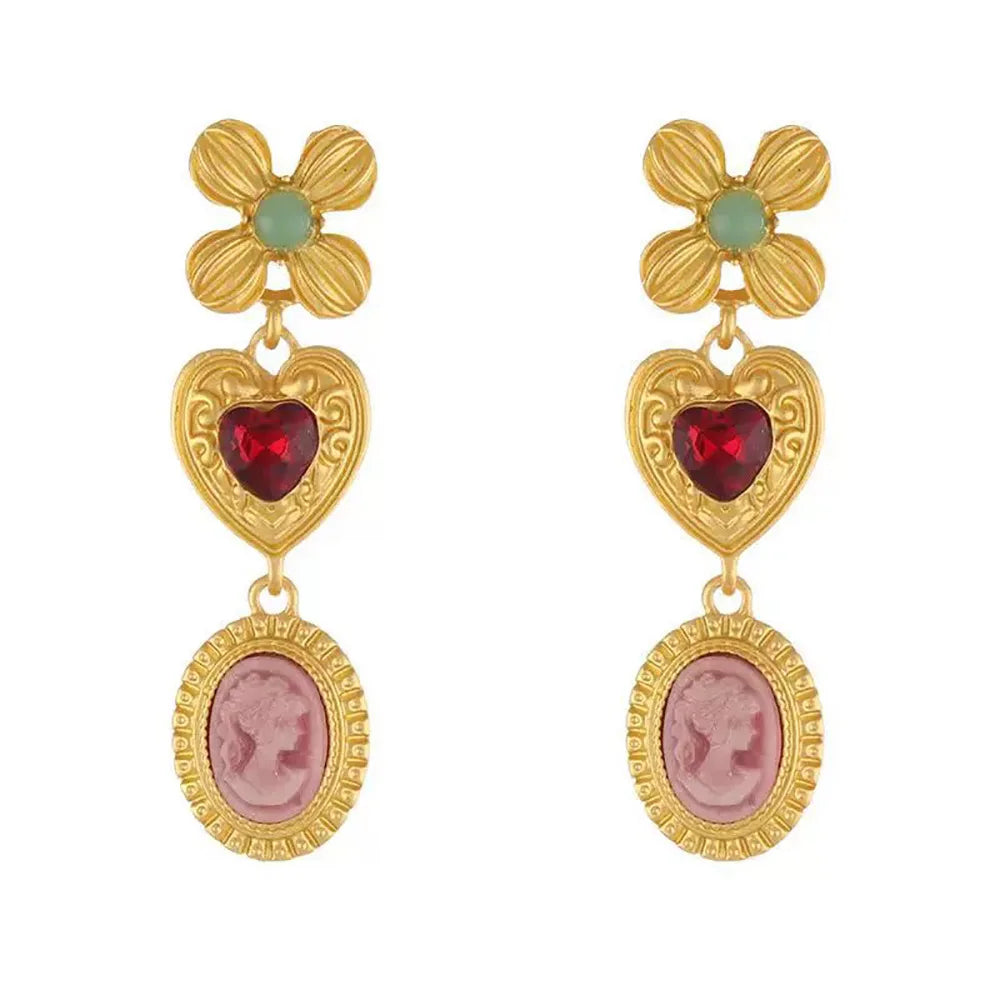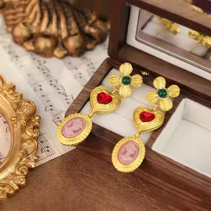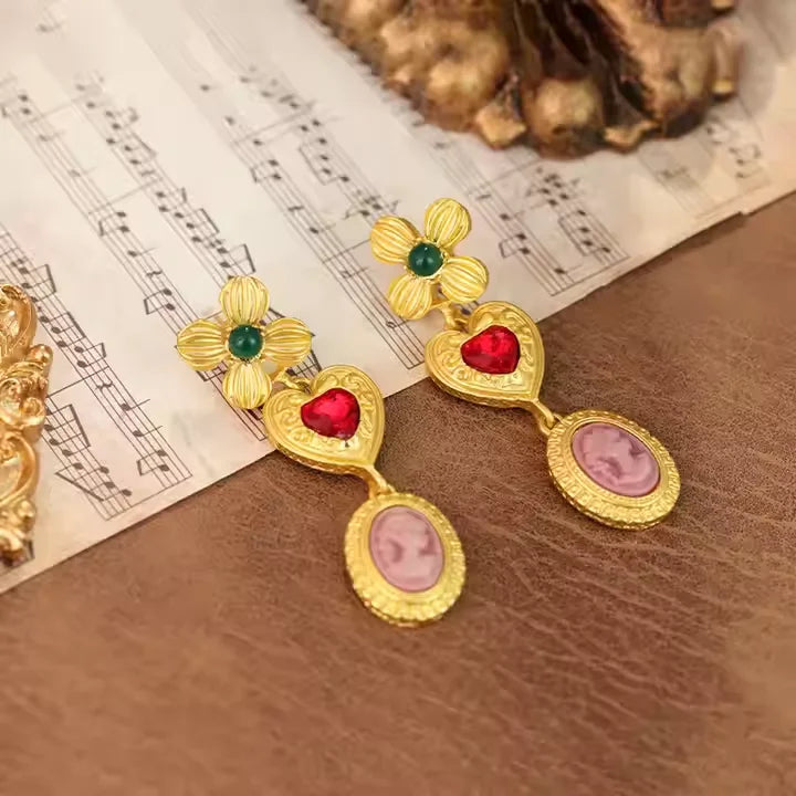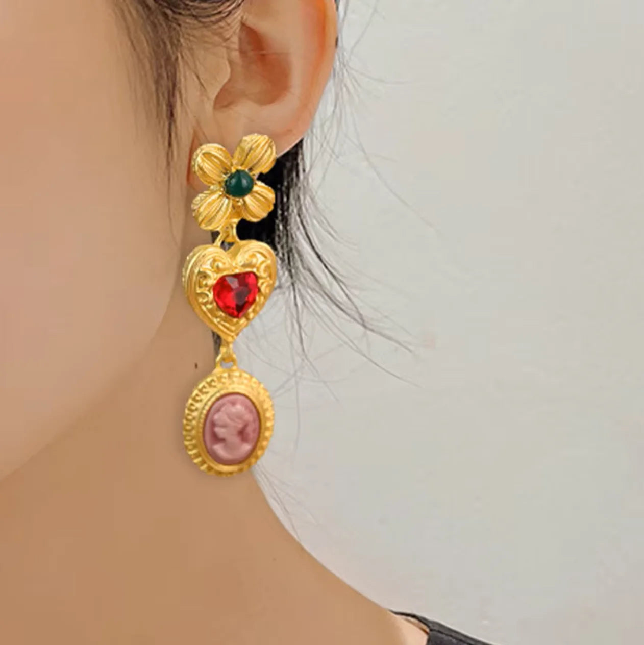 Valentines Day 2025 Trendy Gold Flower Heart Earrings Medieval Flower Studded Heart-shaped Earrings for Women
