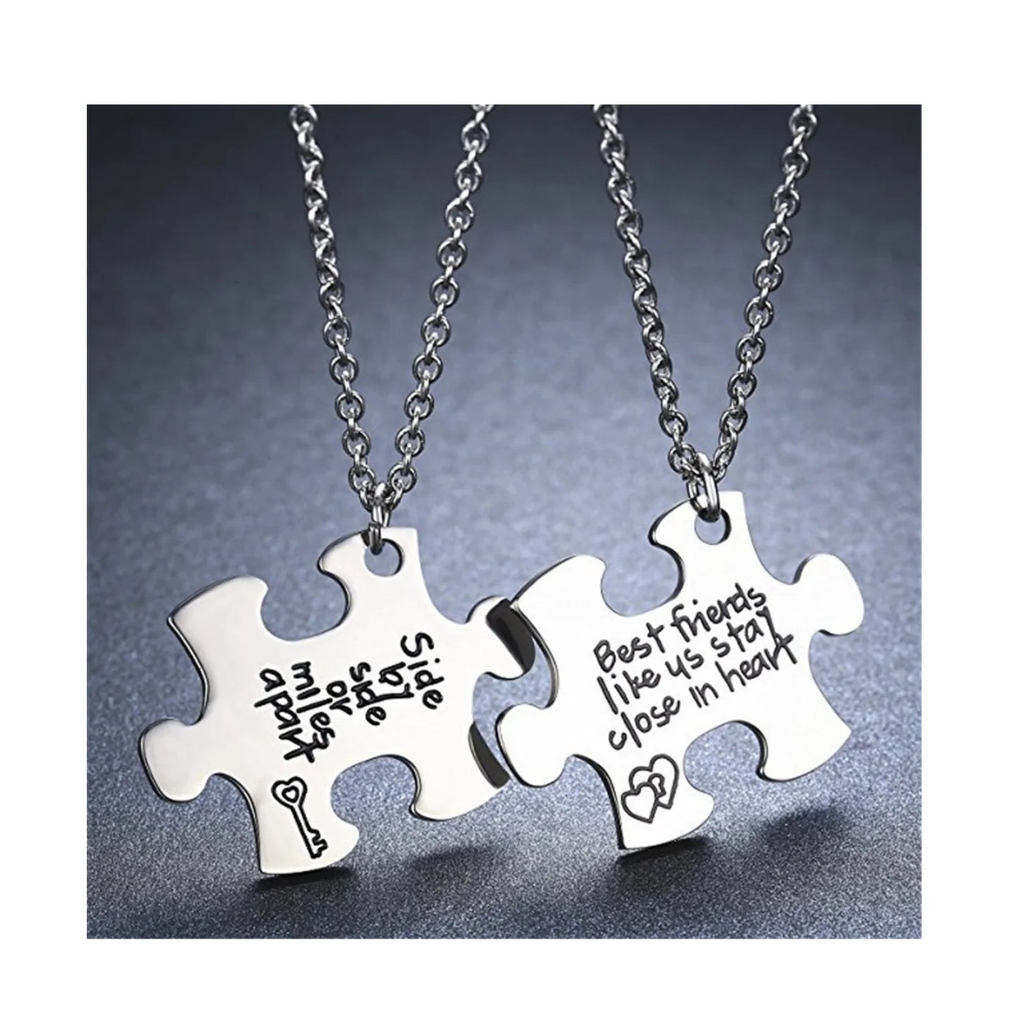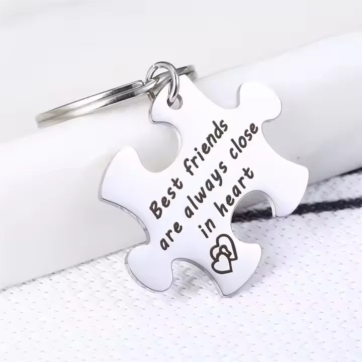 Valentine's Day Puzzle Piece Pendant Necklace KeyChain Set for Men Women Stainless Steel Couple Necklace