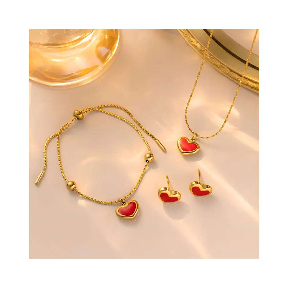 Valentines Day Gift 2025 Fashion Jewelry Sets Gold Plated Red Heart Fashion Earring Bracelets Necklace Jewelry for Women