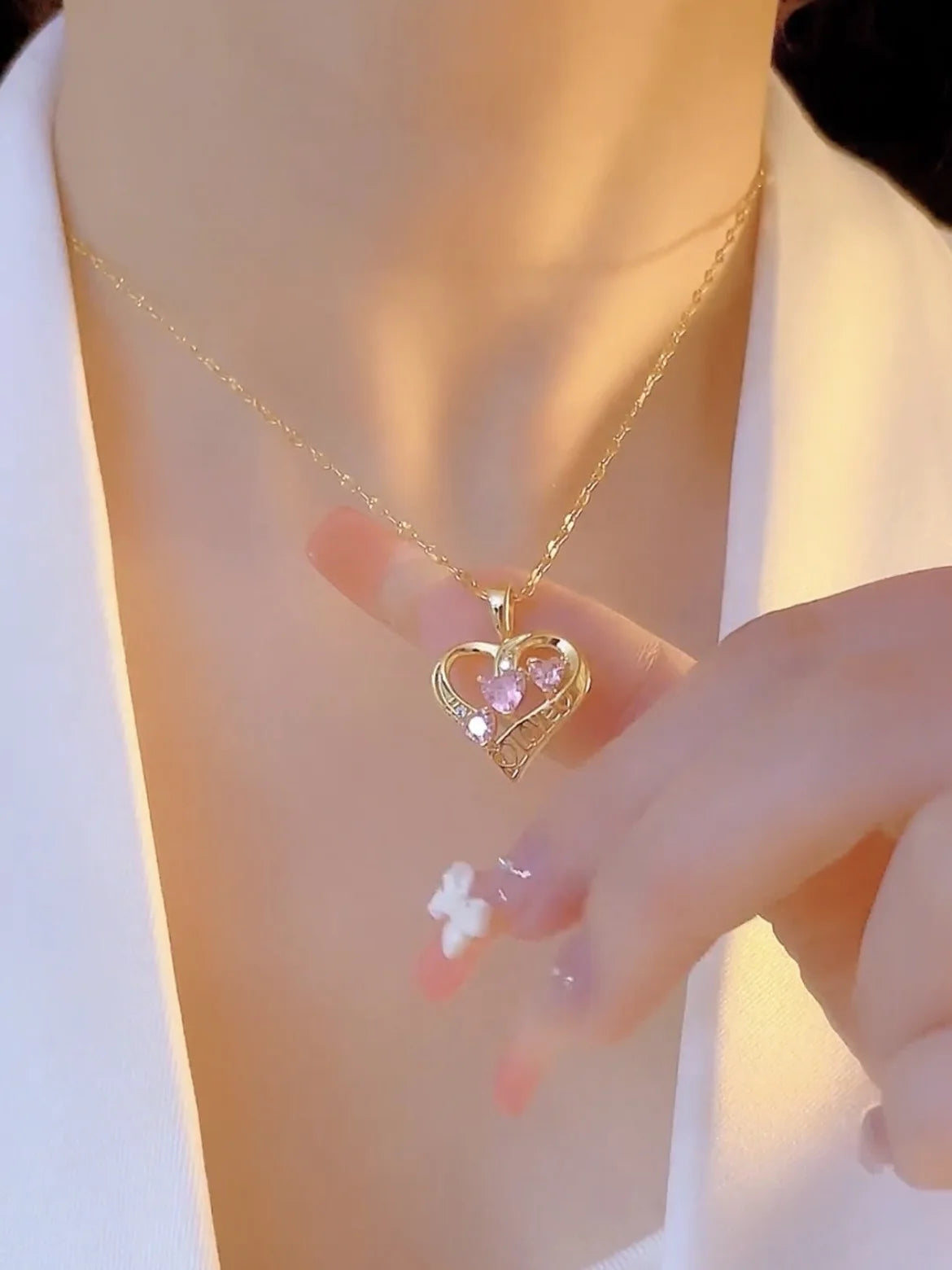 Valentine's Day Gift 2025 Heart Pendant Necklace Fashion Silver Four Heart Necklace with Love Letter for Couples