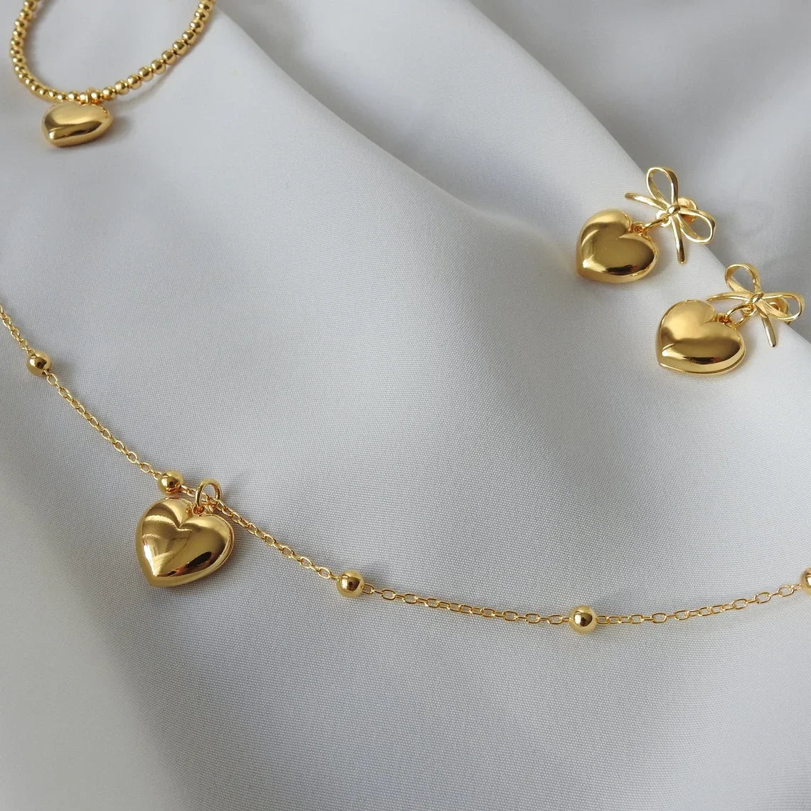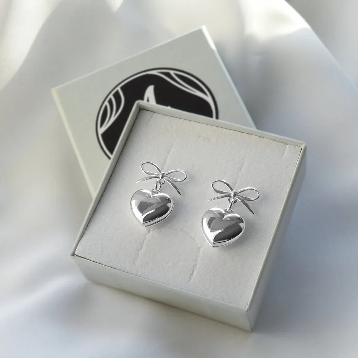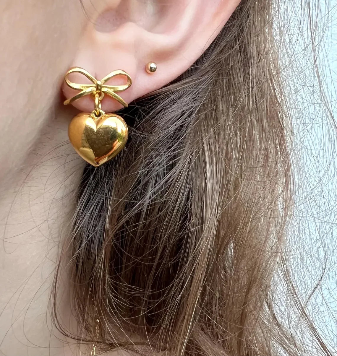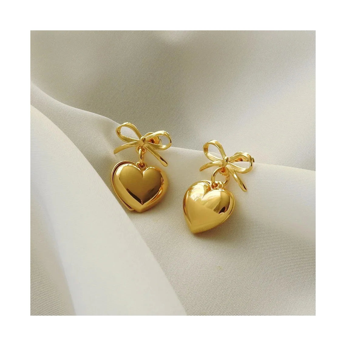 Waterproof 18K Gold Plated Heart Shape Earrings Stainless Steel Heart Pendant Bow Stud Earring for Valentine Day Gift