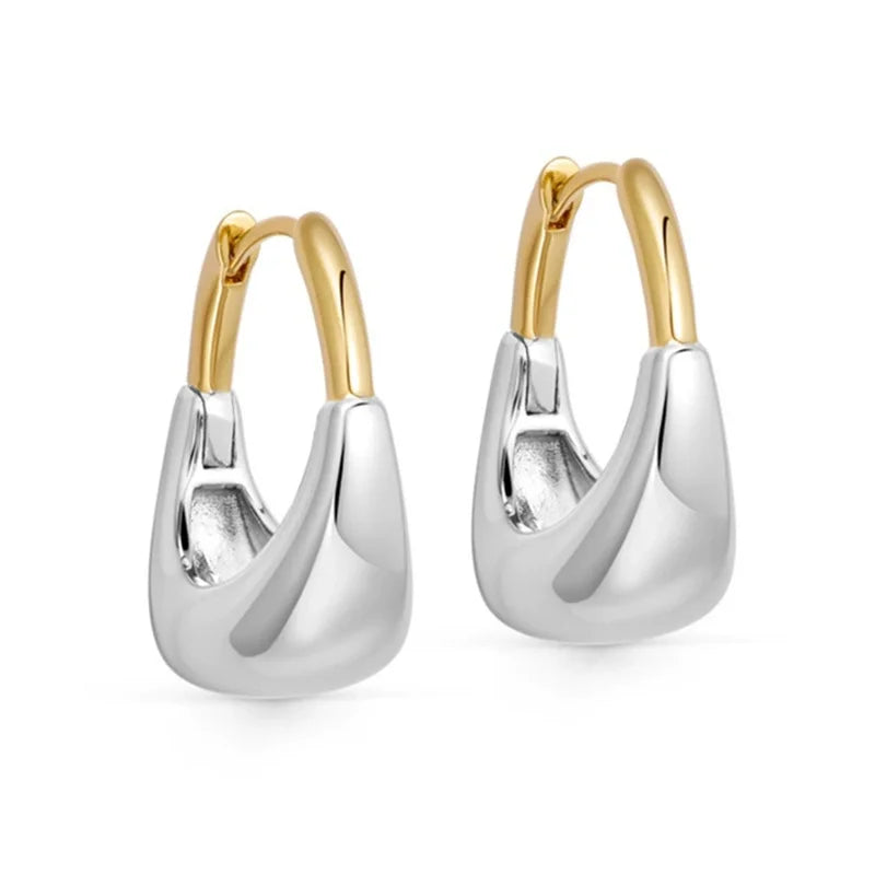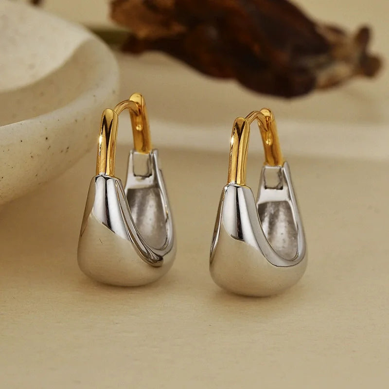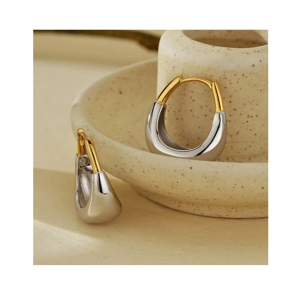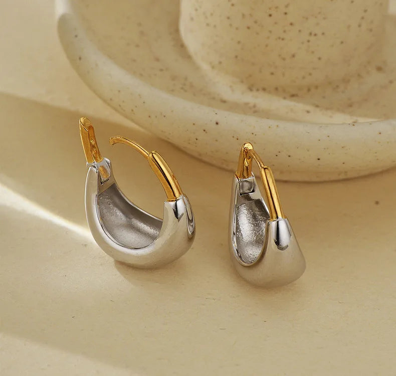 Wholesale 925 Sterling Silver Minimalist U-Shaped Earrings for Girls Personalized Two-Tone Nickel-Free Hoop Earrings