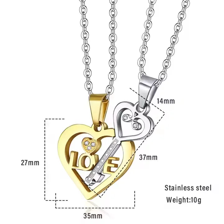 Wholesale Couple Necklaces for Lovers Fashion Titanium Steel Gold Silver Key and Heart Pendant Necklace Matching Set Jewelry