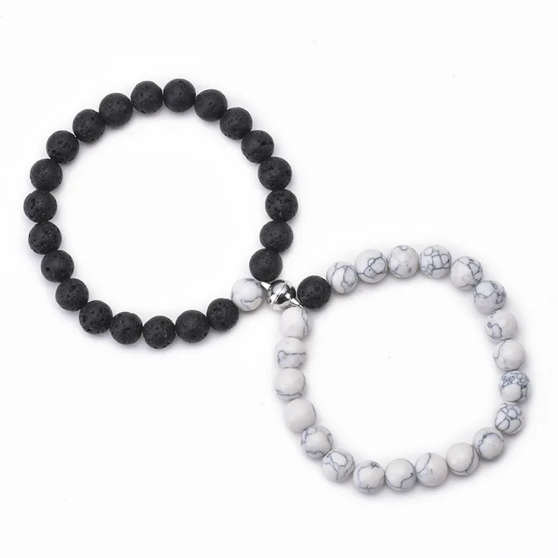 Wholesale Black and White Natural Stone Beaded Bracelet New Explosive Couple Bracelet Magnet Magnet Beaded Bracelet