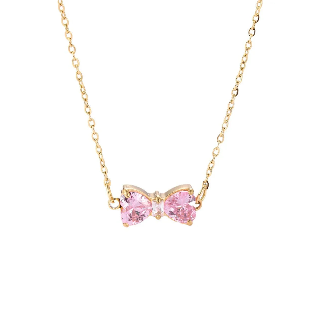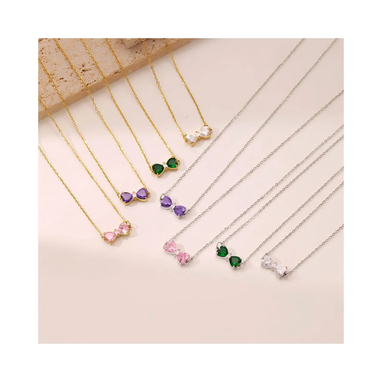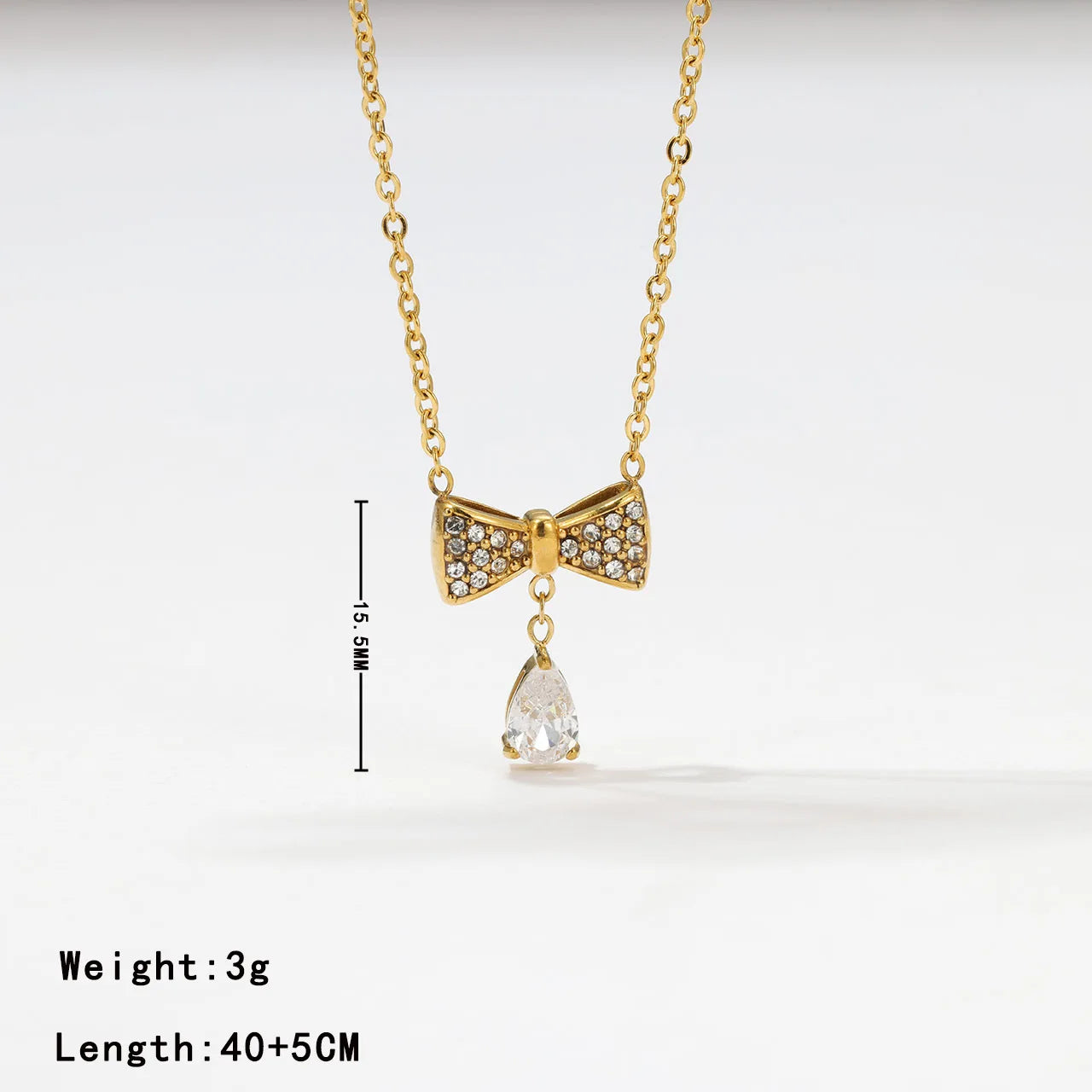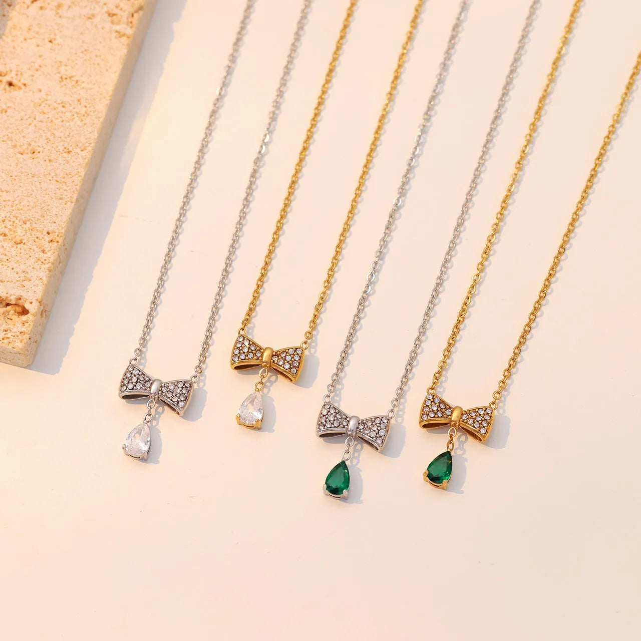 wholesale Fashion gold zircon bow Necklaces stainless steel silver bow tie necklace for women gift