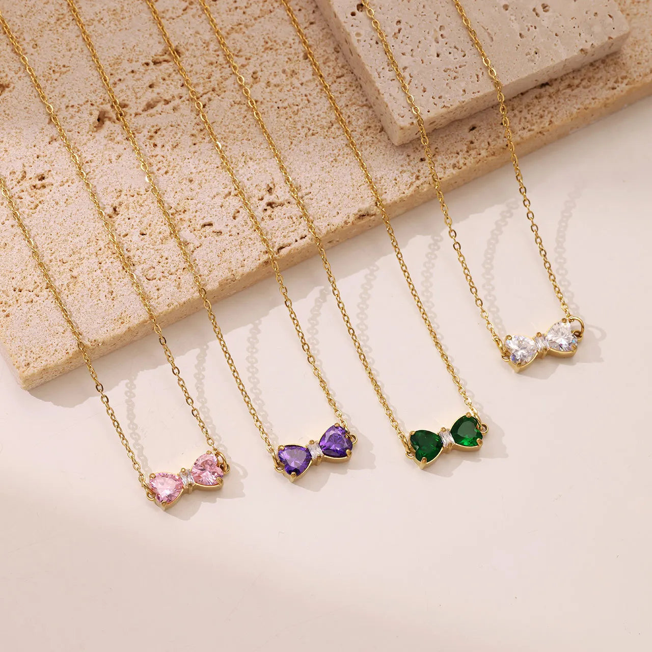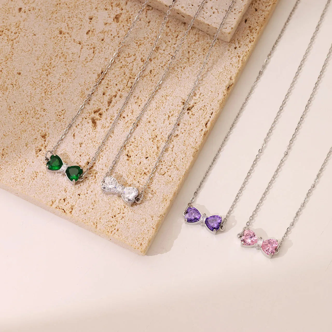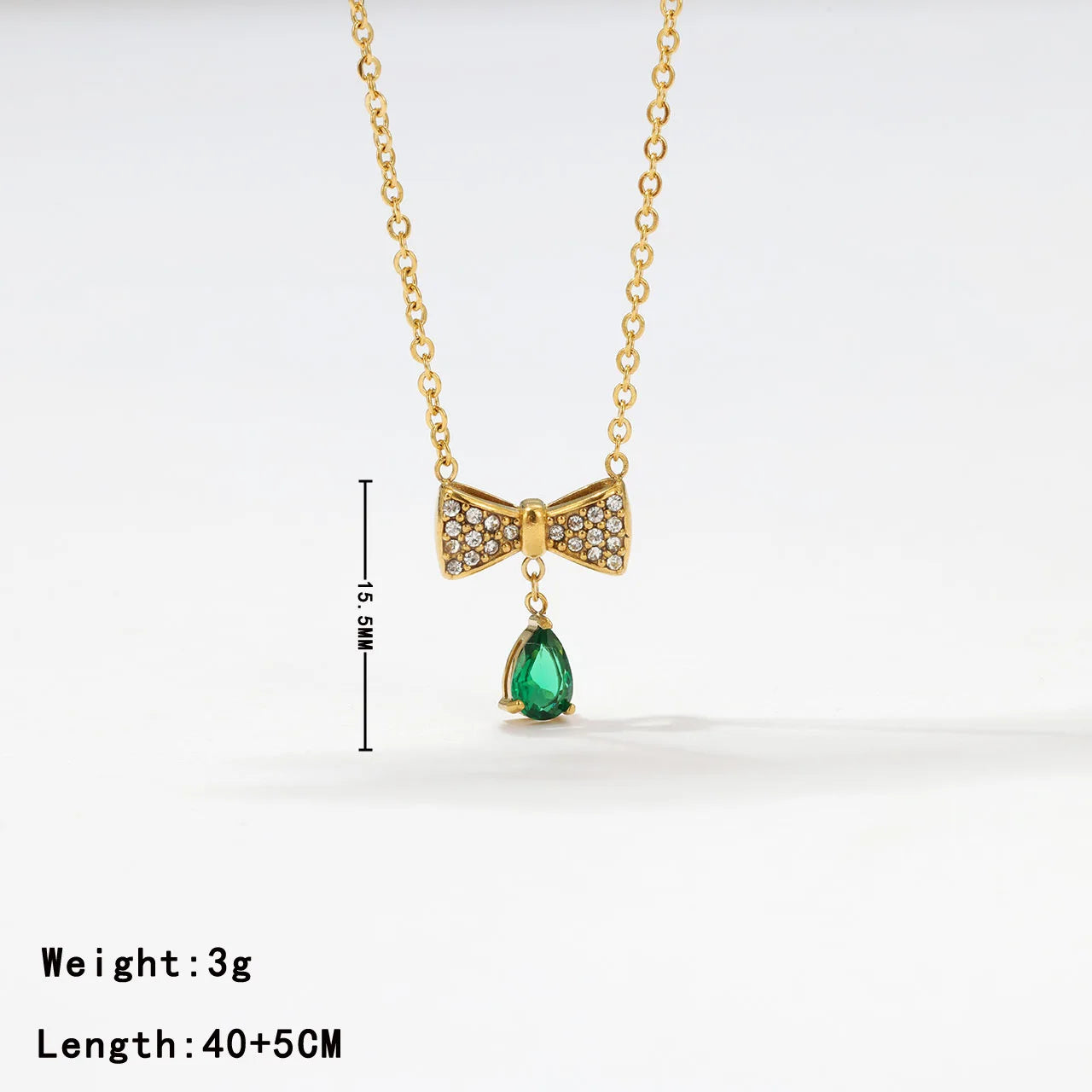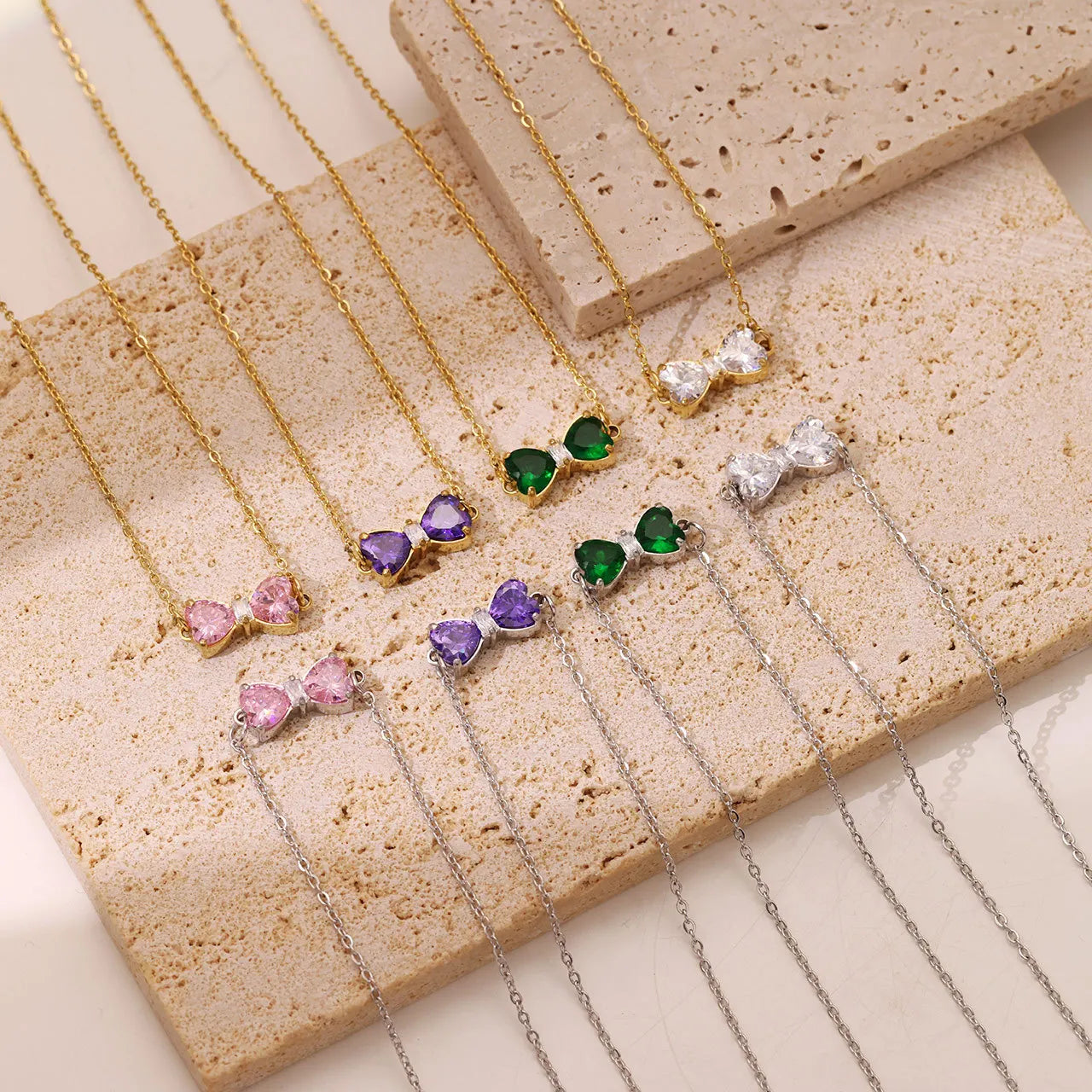 wholesale Fashion gold zircon bow Necklaces stainless steel silver bow tie necklace for women gift