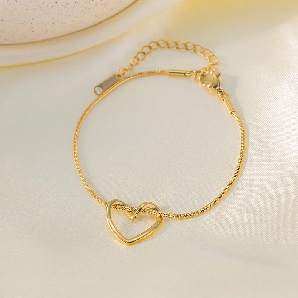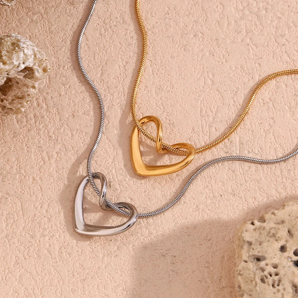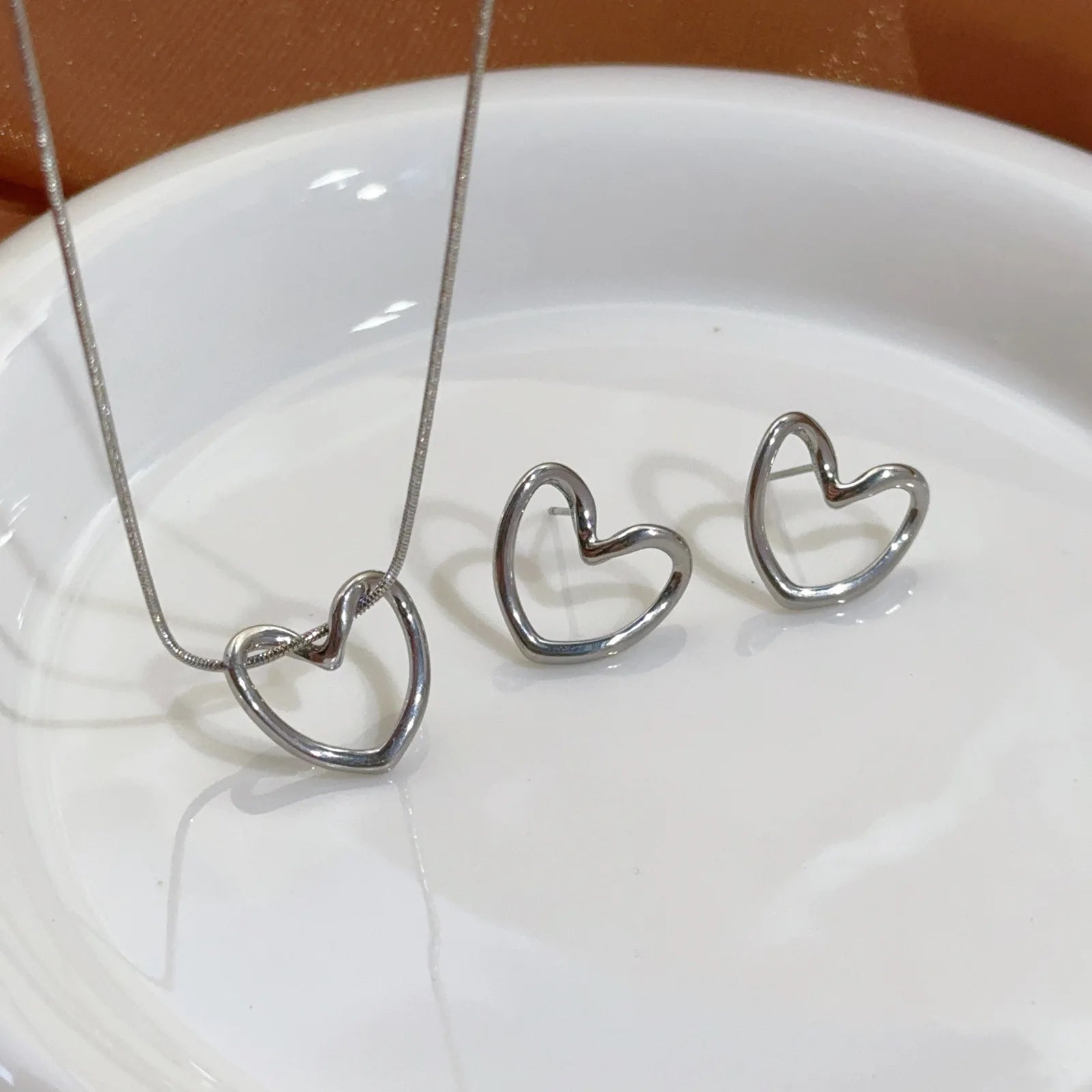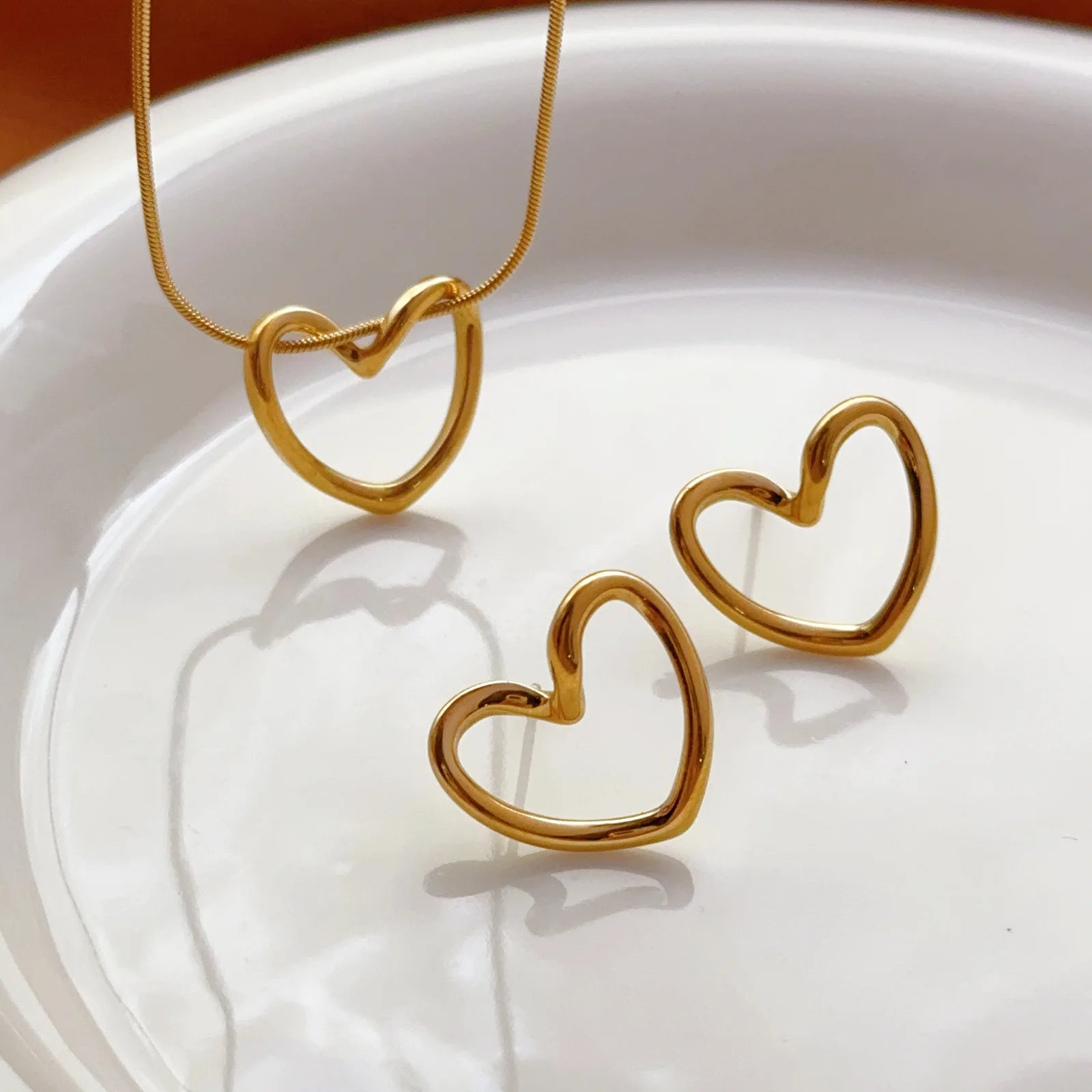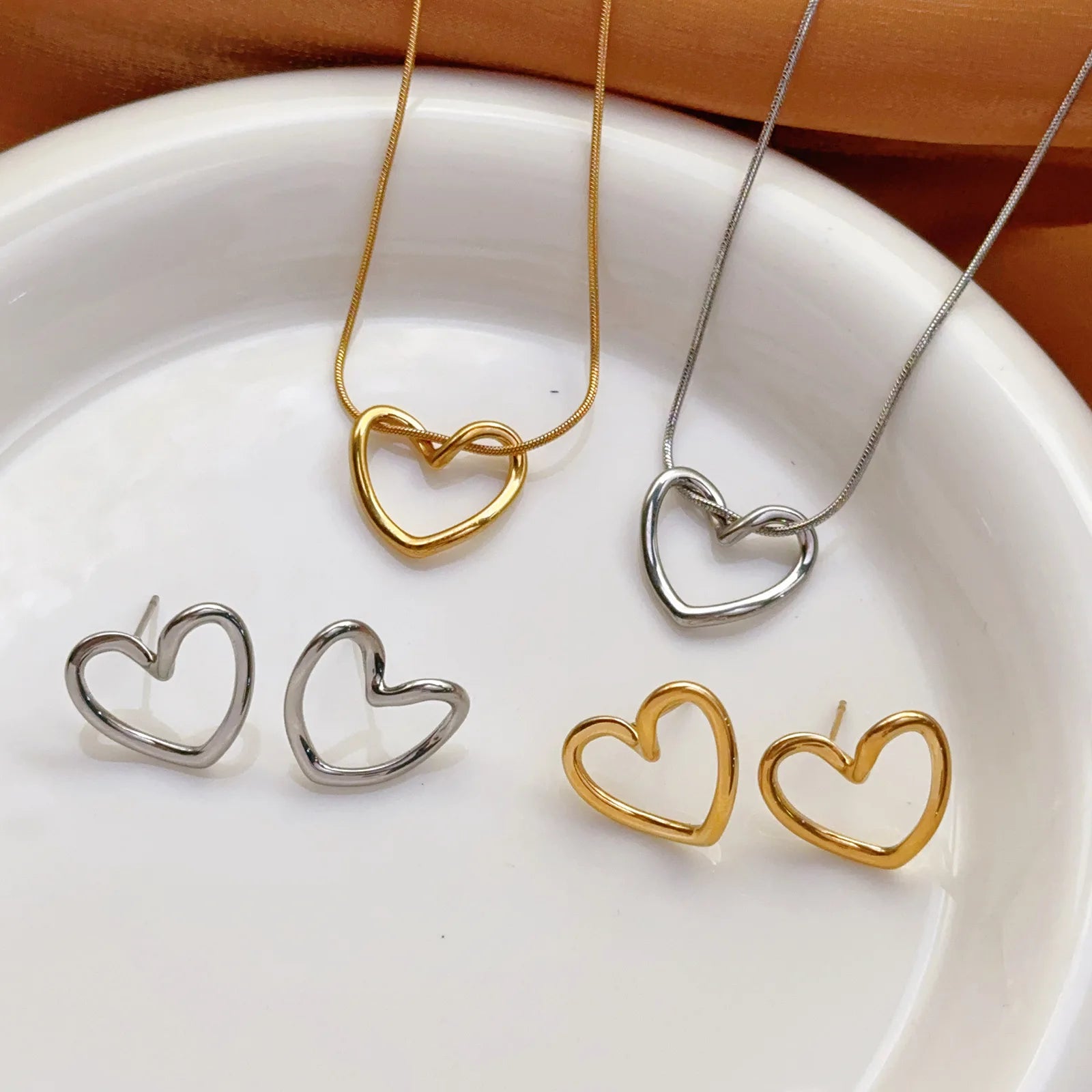 Wholesale Fashion Minimalist Stainless Steel 18k Gold Plated Snake Chain Heart Necklace earring bracelet Jewelry Set for Women